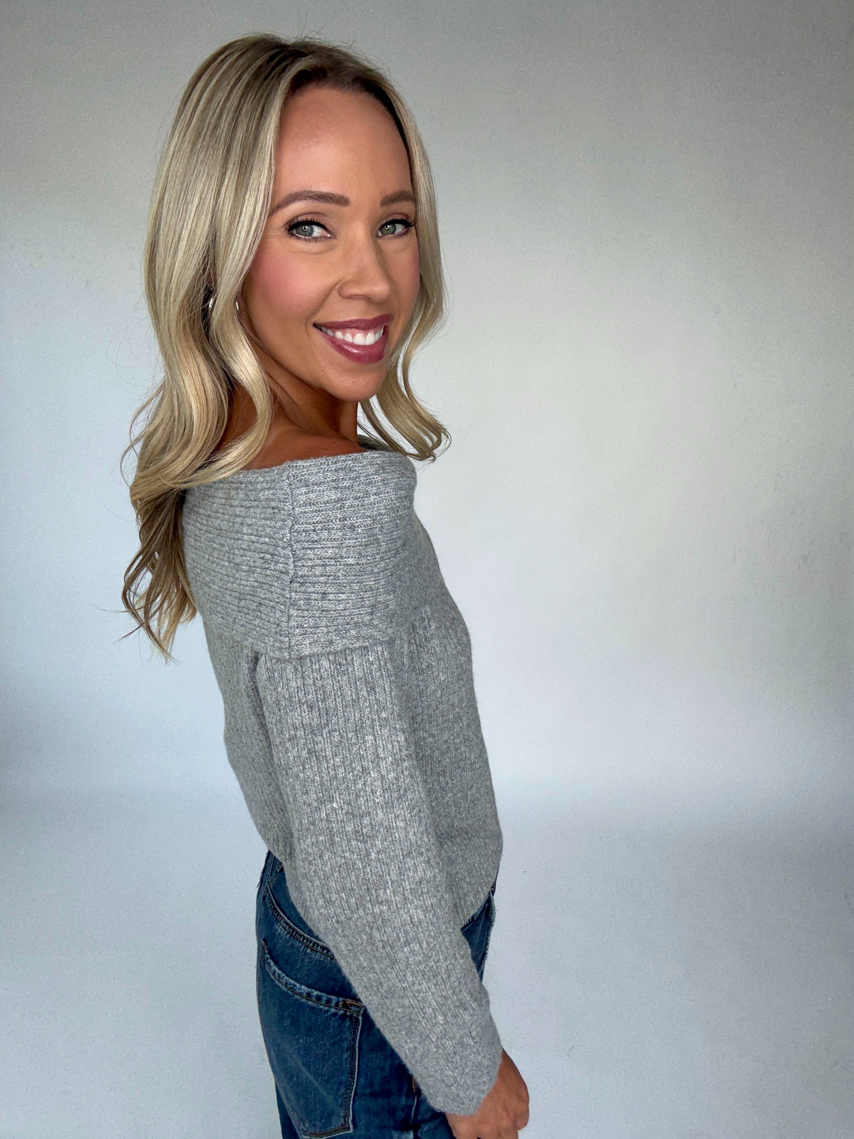 With its versatile waist-length cut, the Silver Bardot pairs seamlessly with tailored pieces like our Sanctuary Runway Ponte Trouser Pants for an elevated work-ready look, or with your favorite denim for effortless weekend style. Both soft and polished, this sweater transitions with ease from day to night, making it a chic essential for every season.