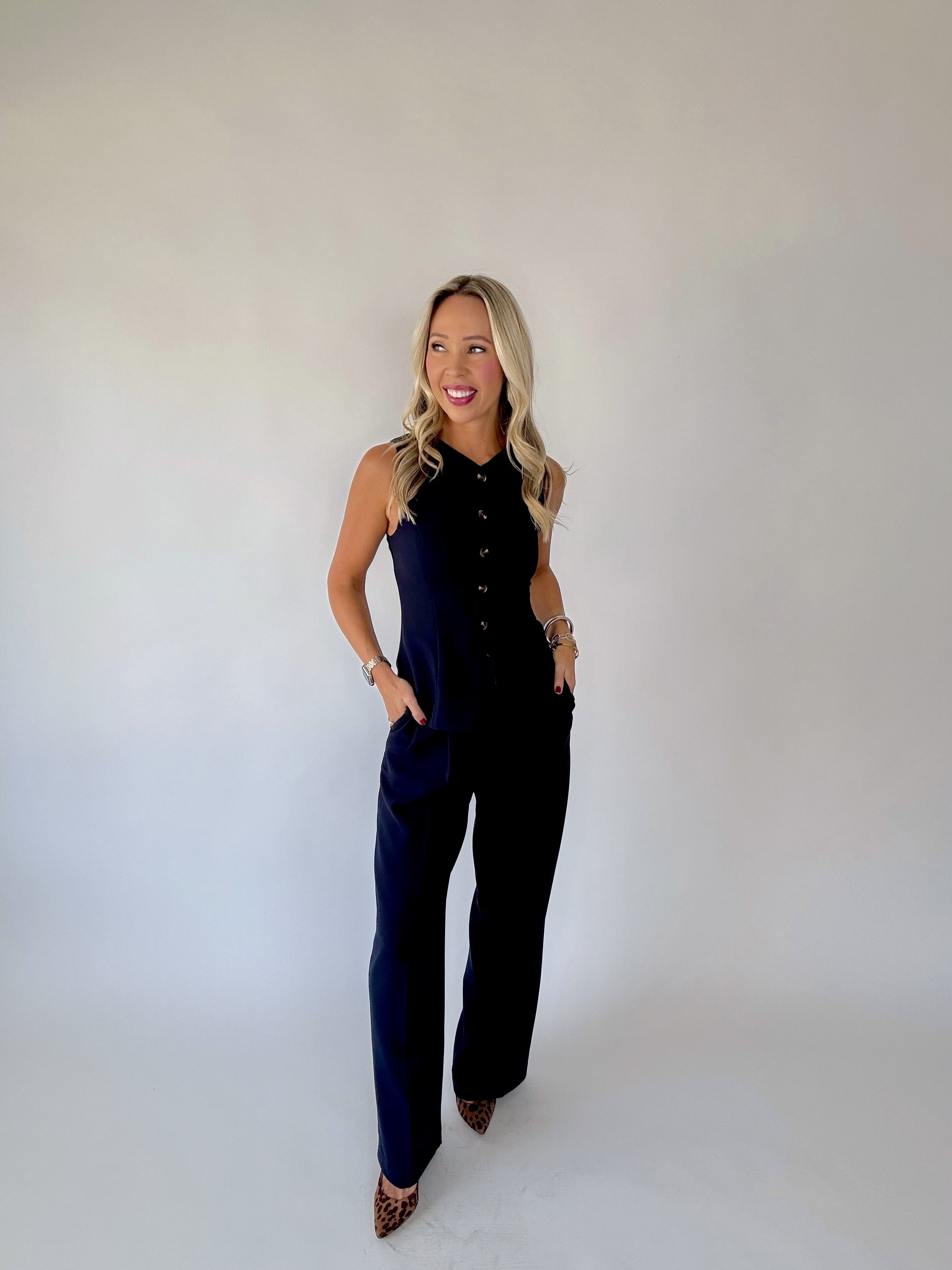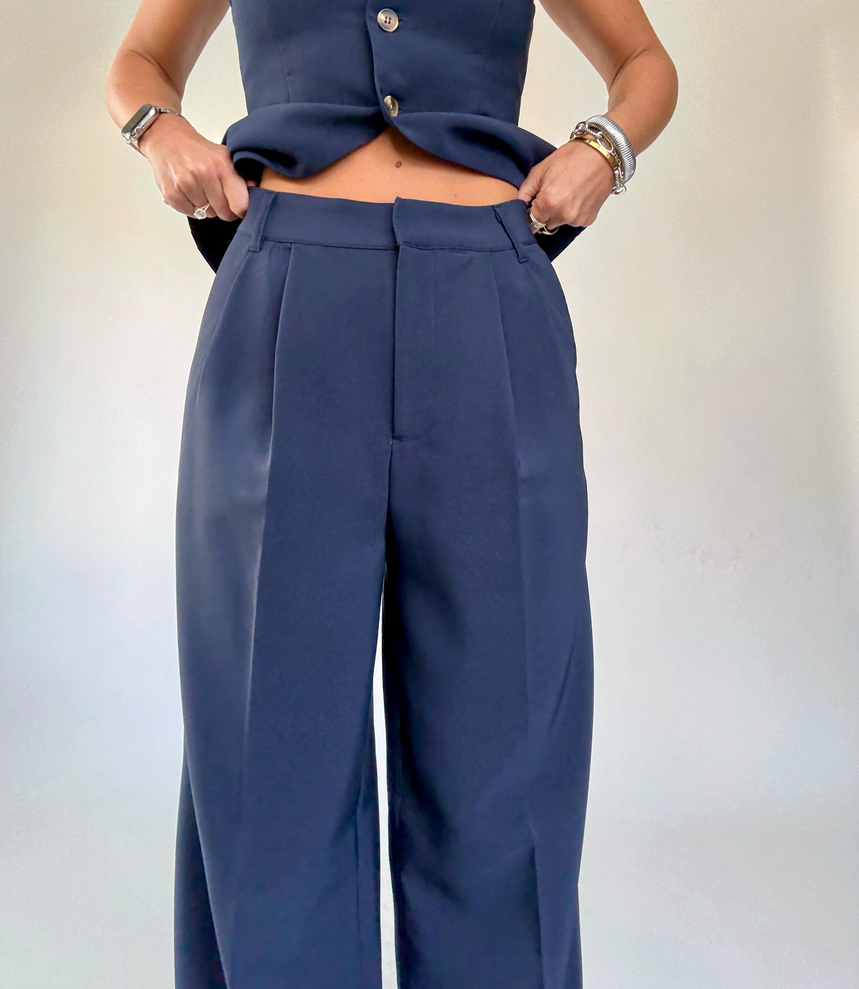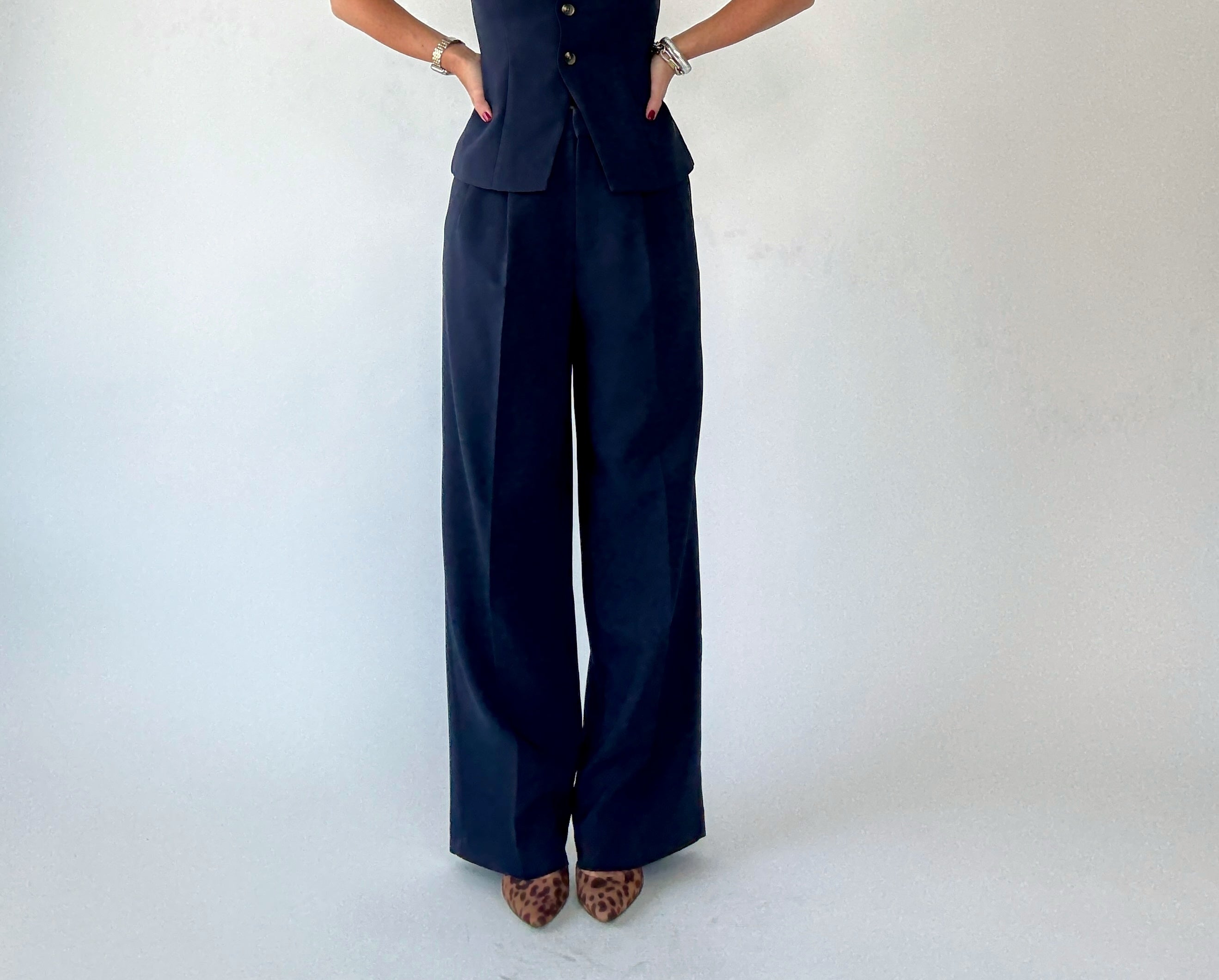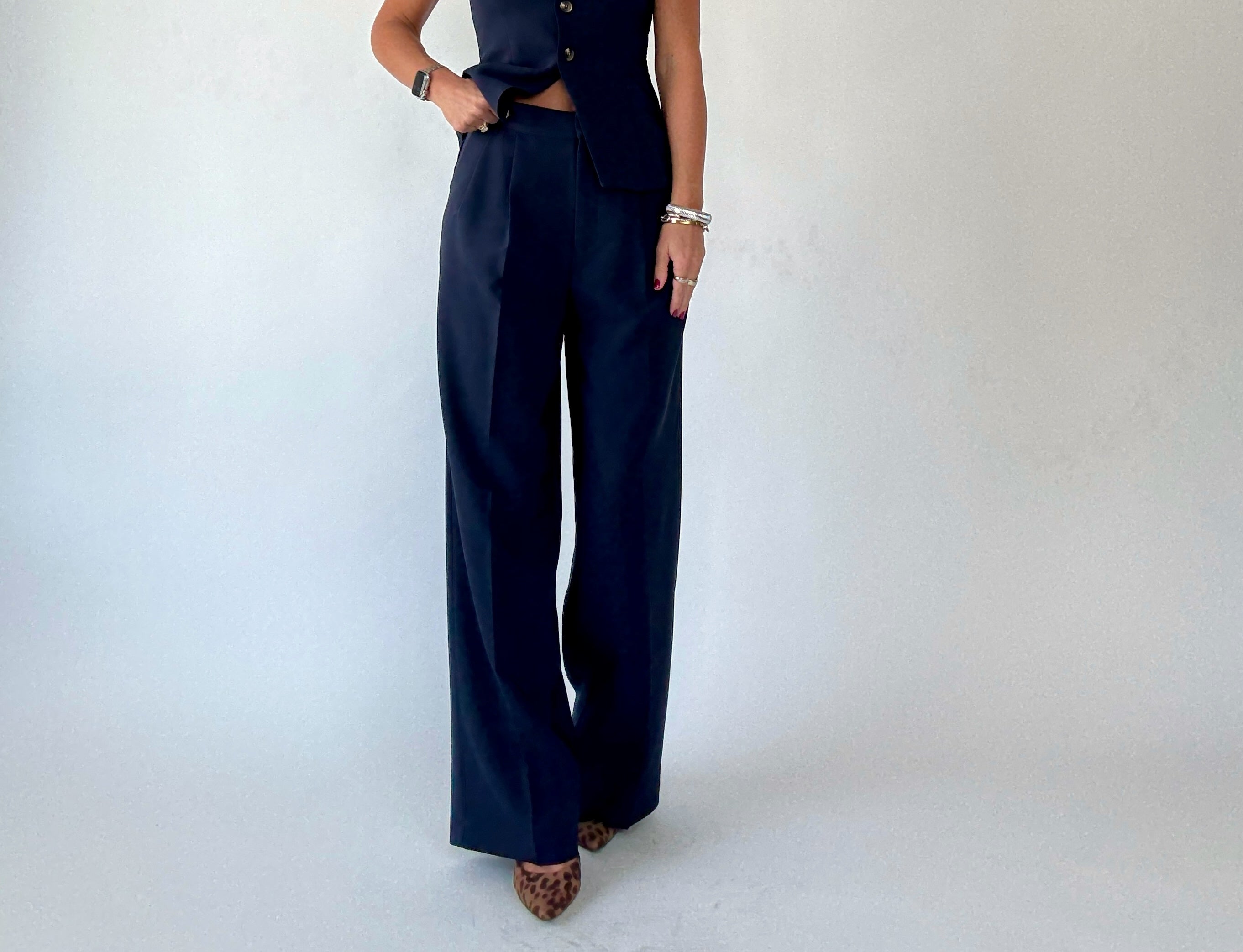 Designed with a high-rise waist and elegant pleated front, these wide-leg trousers create a flattering, elongated silhouette that moves with ease. Side pockets add a touch of practicality without compromising style, while the tailored structure makes them a natural choice for both work and elevated occasions. Pair them with the matching Power Moves Top for a sophisticated set, or style them with blouses, knits, or blazers for endless wardrobe possibilities.