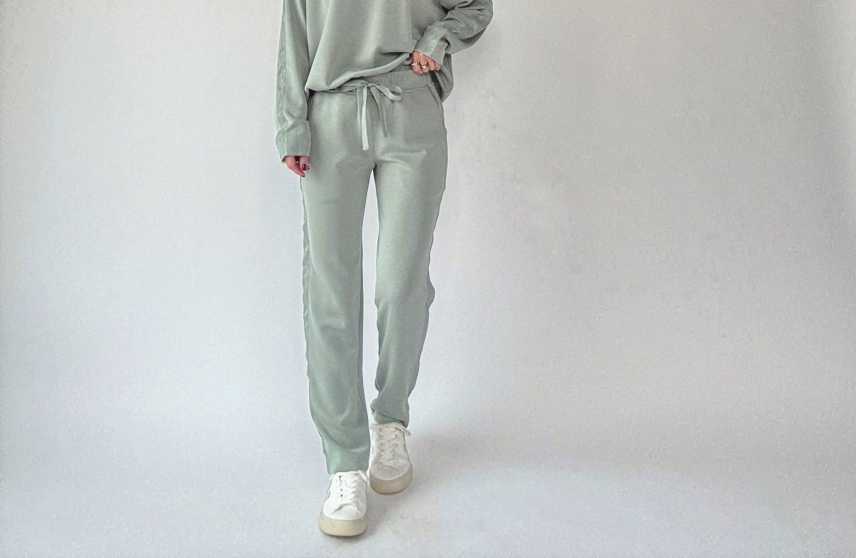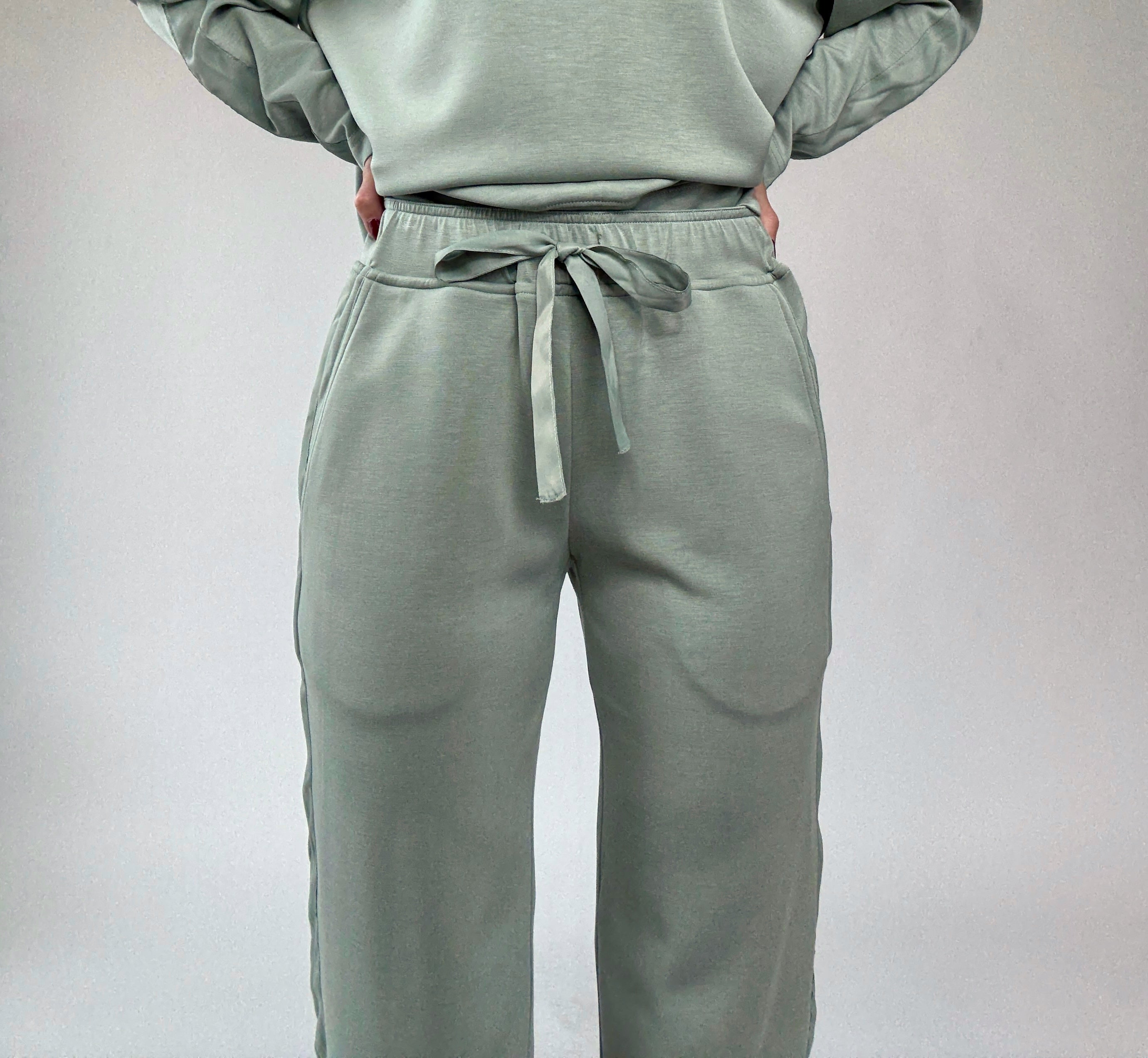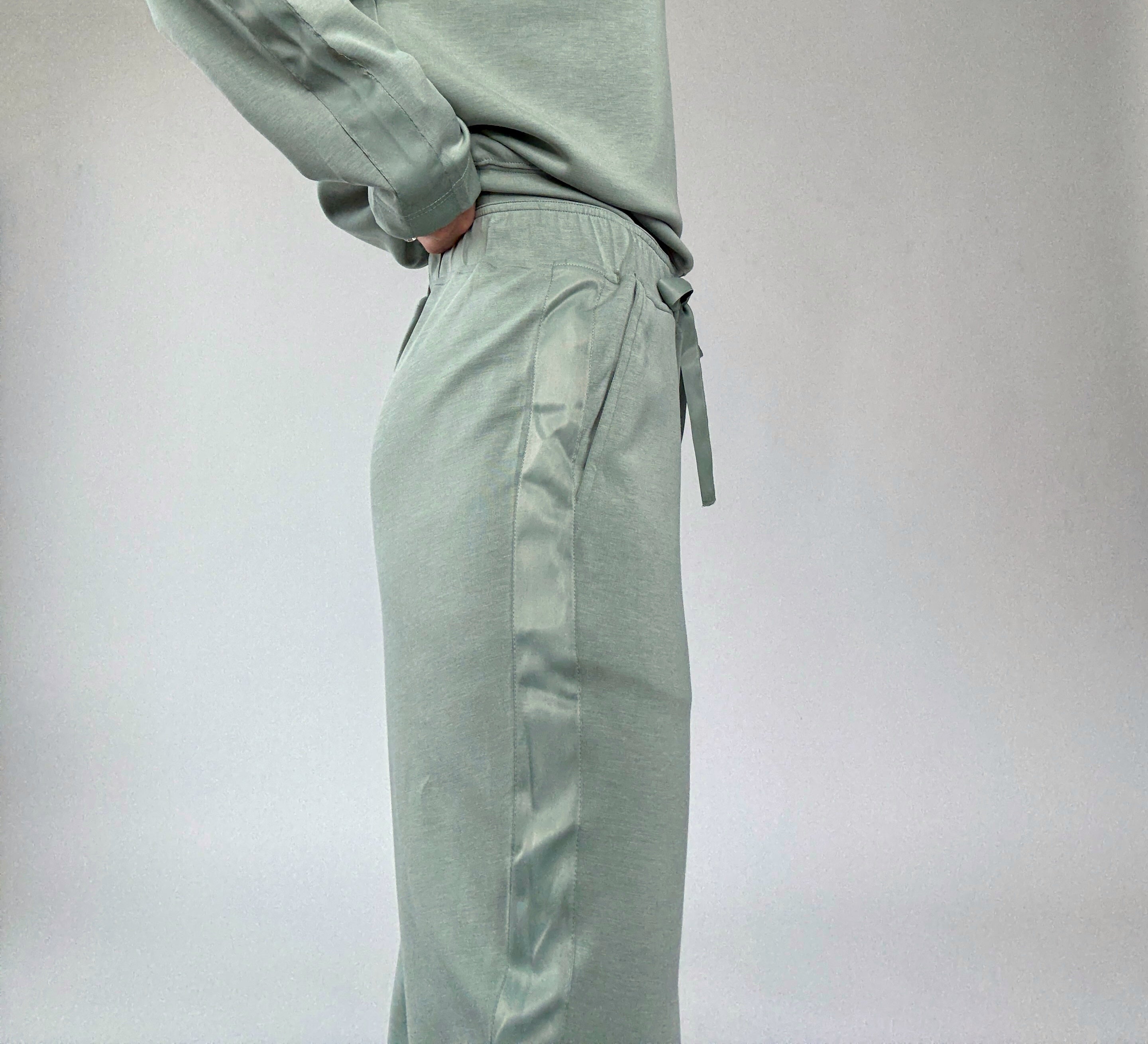 Perfect for lounging at home, cozy holiday mornings, or casual outings, these pants pair effortlessly with the Satin Serenity Crewneck Top for a coordinated set that embodies comfort and understated elegance.