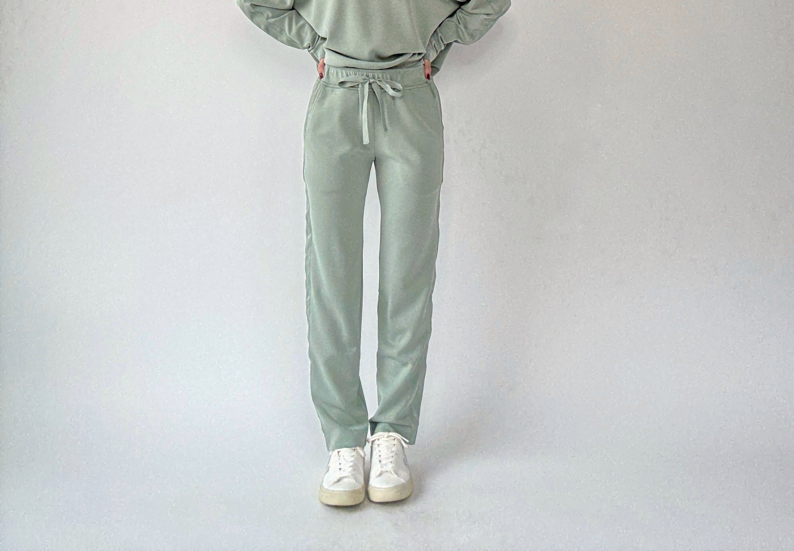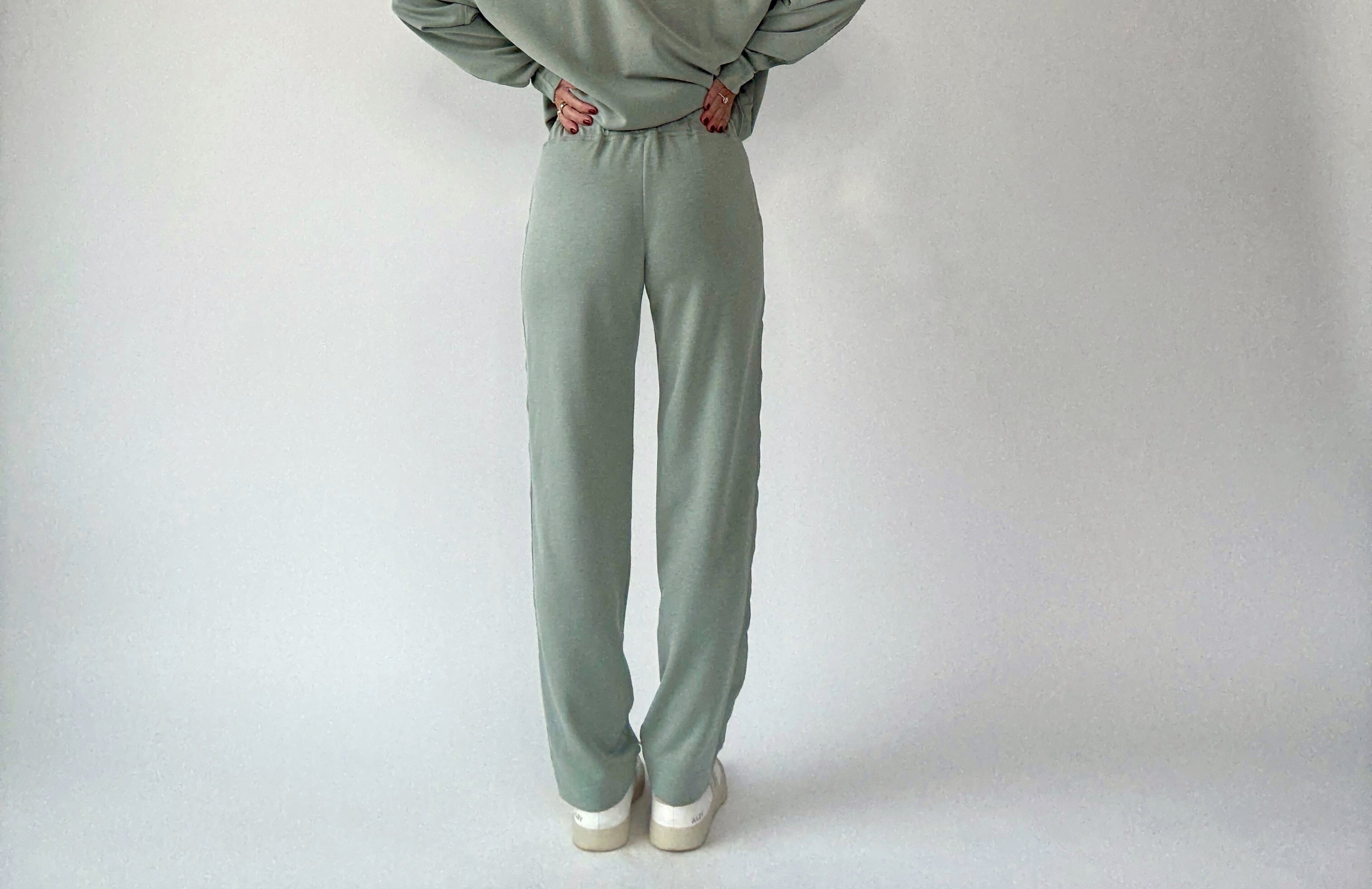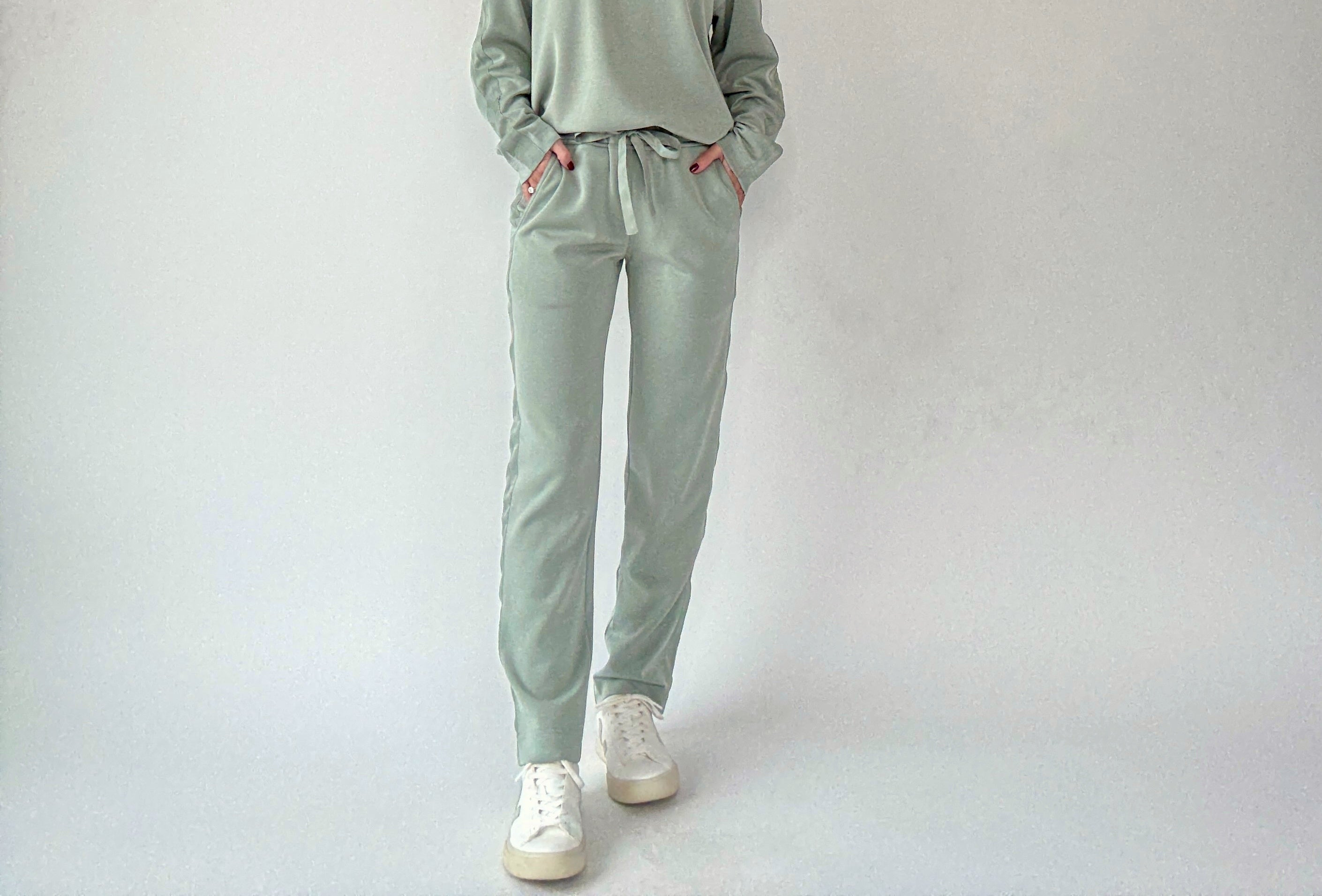 Perfect for lounging at home, cozy holiday mornings, or casual outings, these pants pair effortlessly with the Satin Serenity Crewneck Top for a coordinated set that embodies comfort and understated elegance.