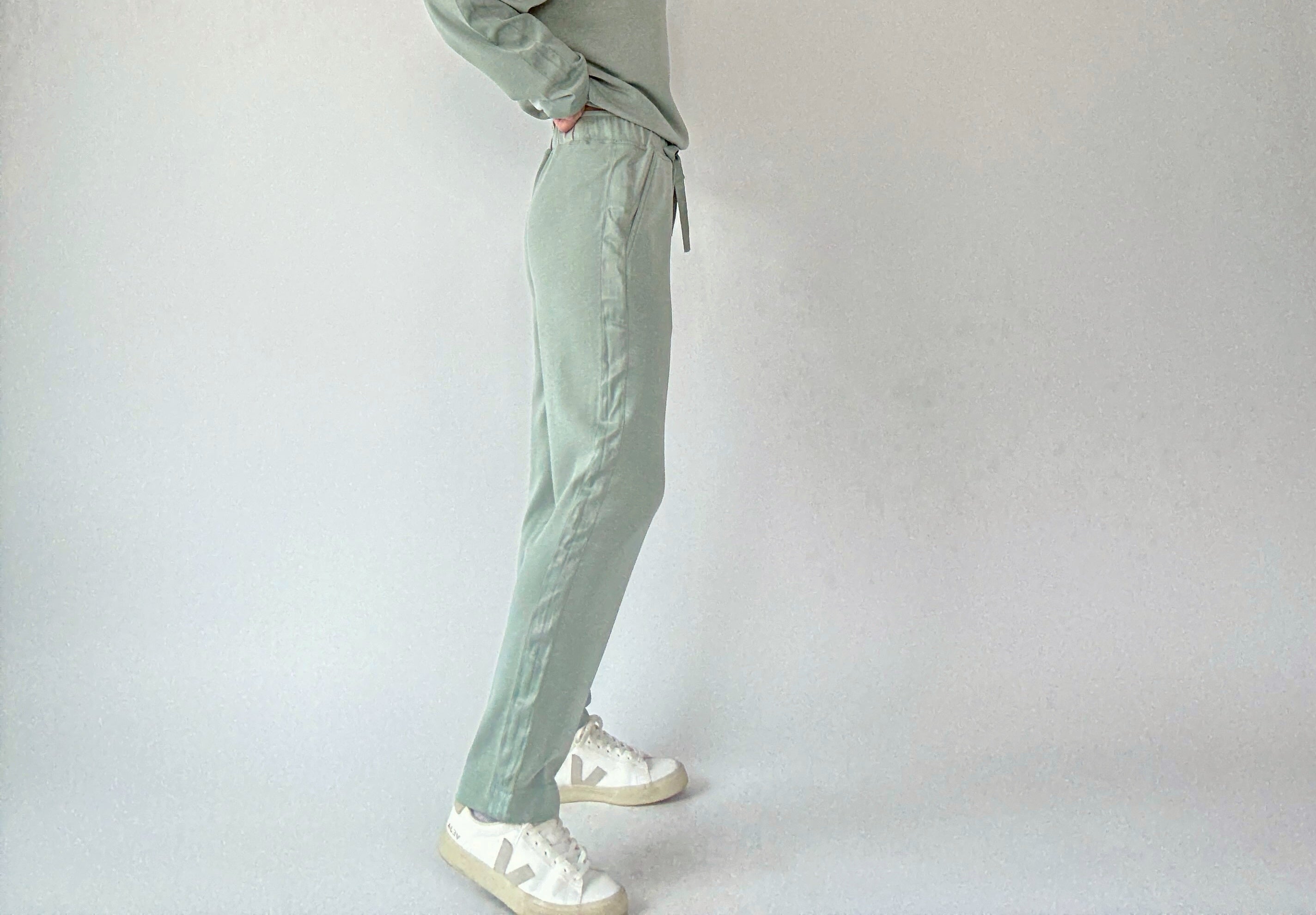 The Satin Serenity Lounge Pants redefine everyday comfort with a touch of sophistication. Crafted from the same ultra-soft, buttery fabric as the matching crewneck, these pants feature a sleek satin trim running down each leg for an elevated, polished look. A working drawstring waistband ensures the perfect fit, while practical side pockets add function to their refined design.