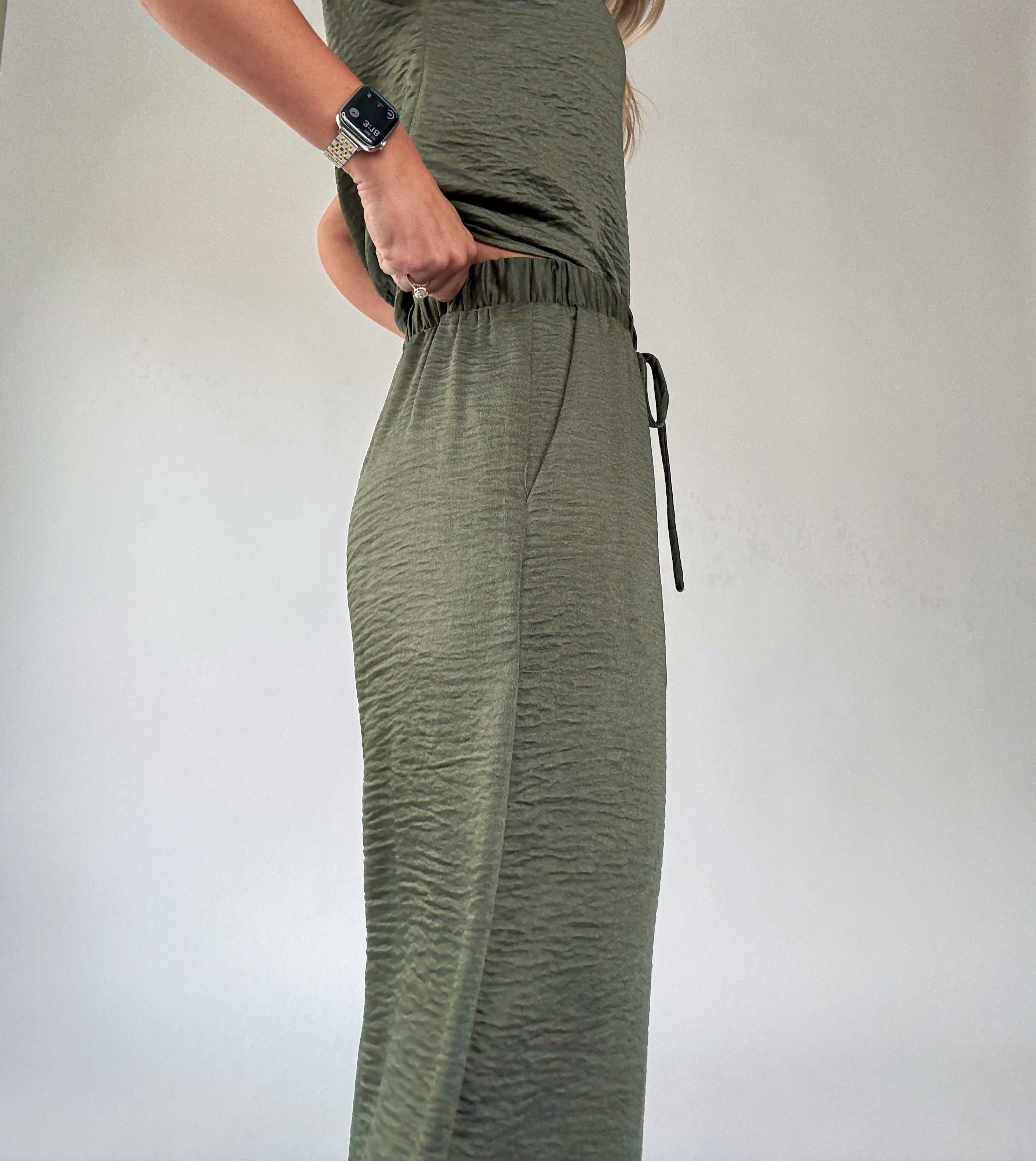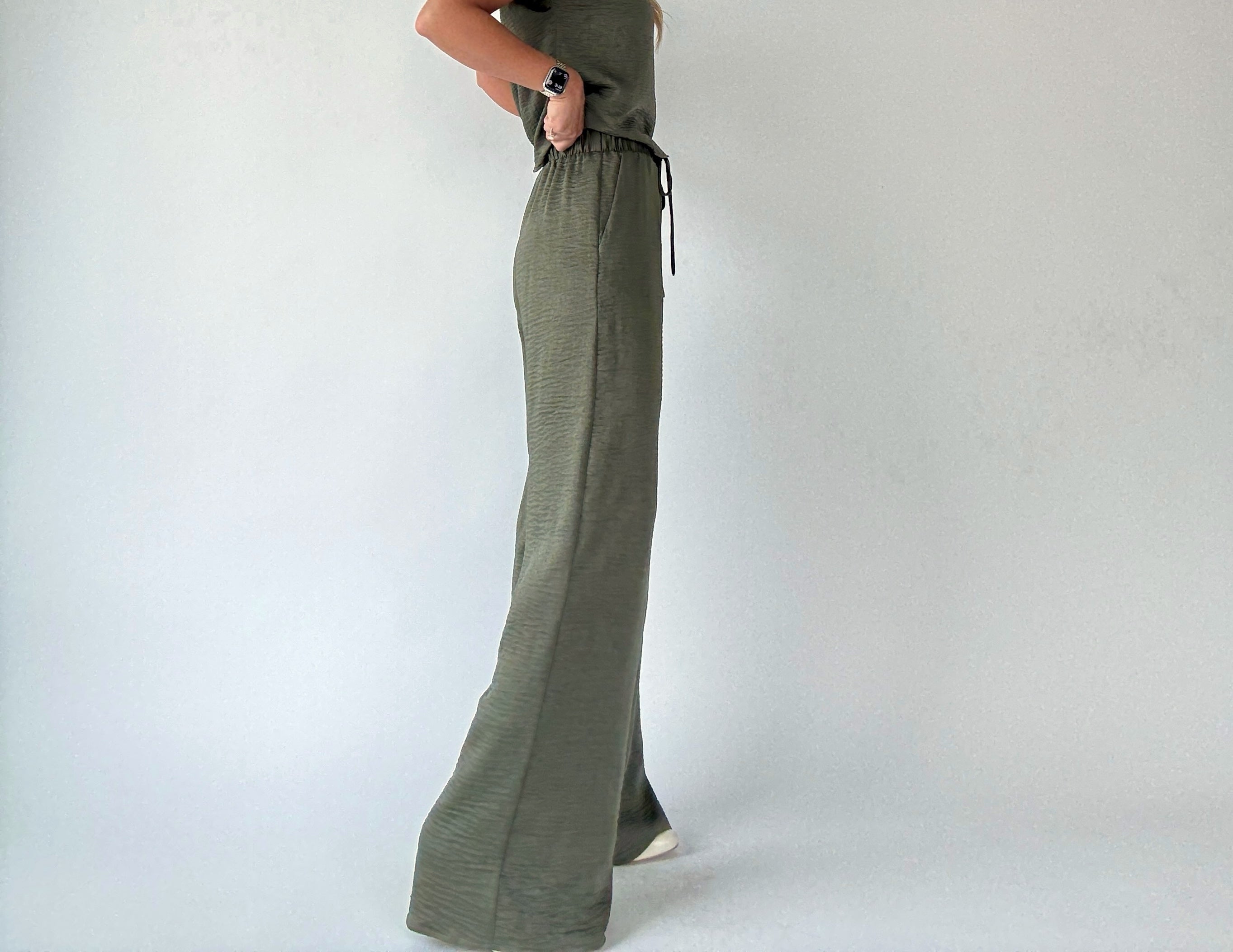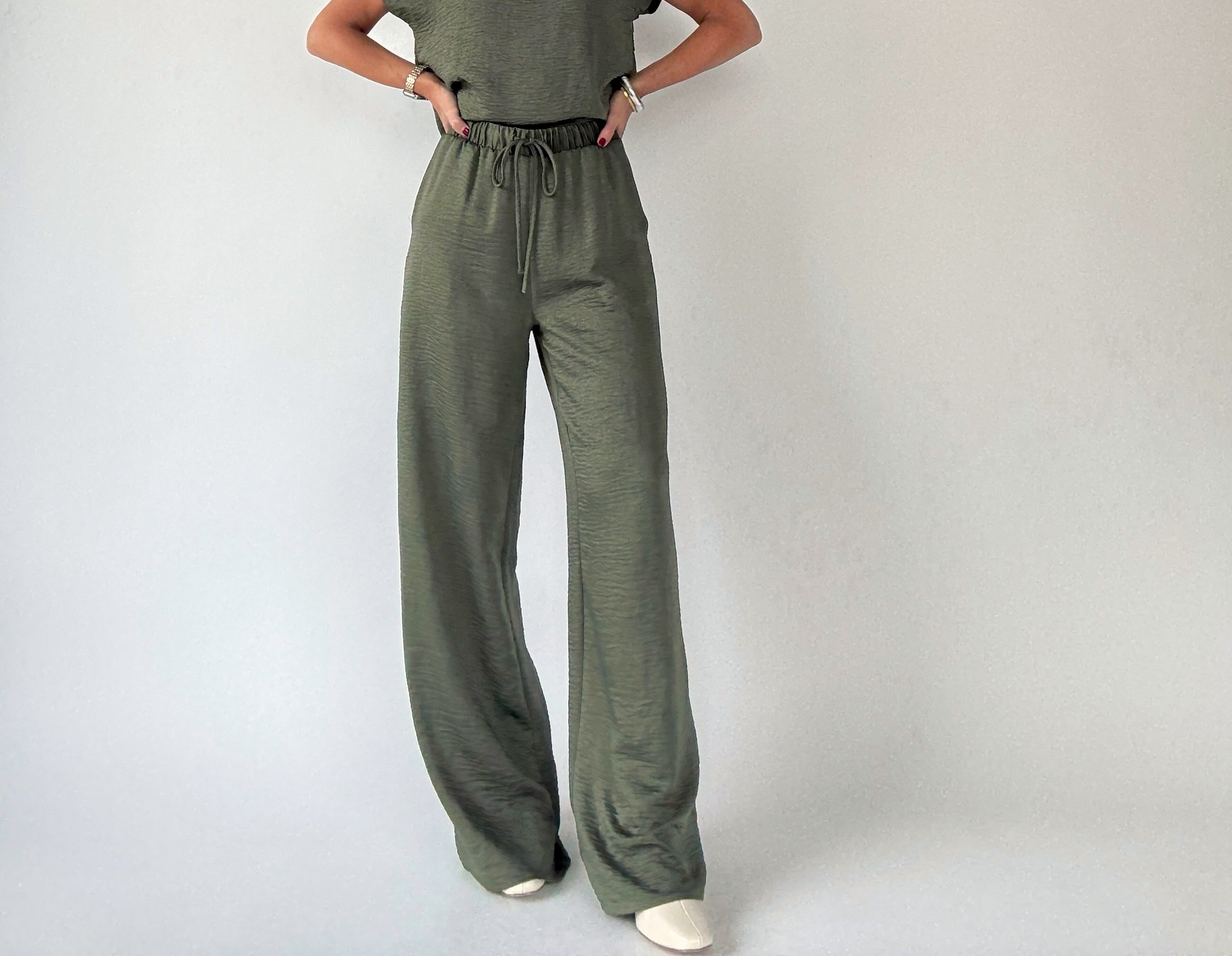 Complete the effortlessly chic look with the Soft As Satin Pants, crafted from the same luxuriously soft, satin-like fabric as the matching top. Featuring an elastic waistband with a functional drawstring and convenient side pockets, these pants combine comfort with sophistication. Perfect as a coordinated set with the Soft As Satin Top, or styled individually with blouses or casual tees, they transition seamlessly from everyday errands to dressier occasions.