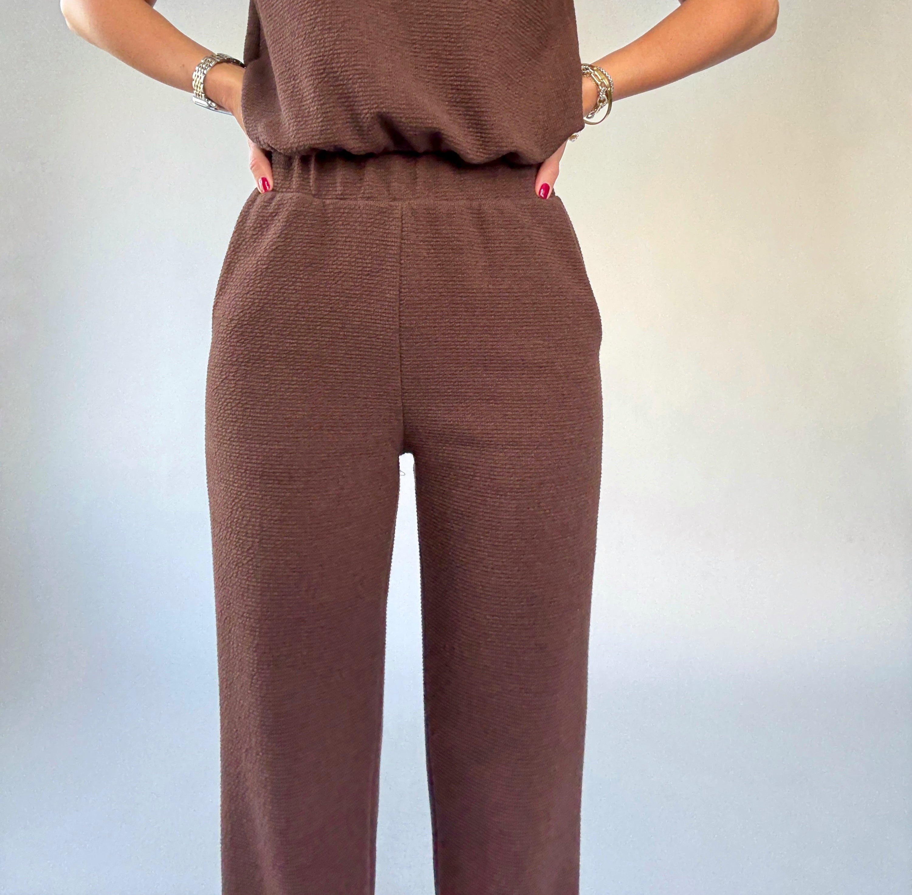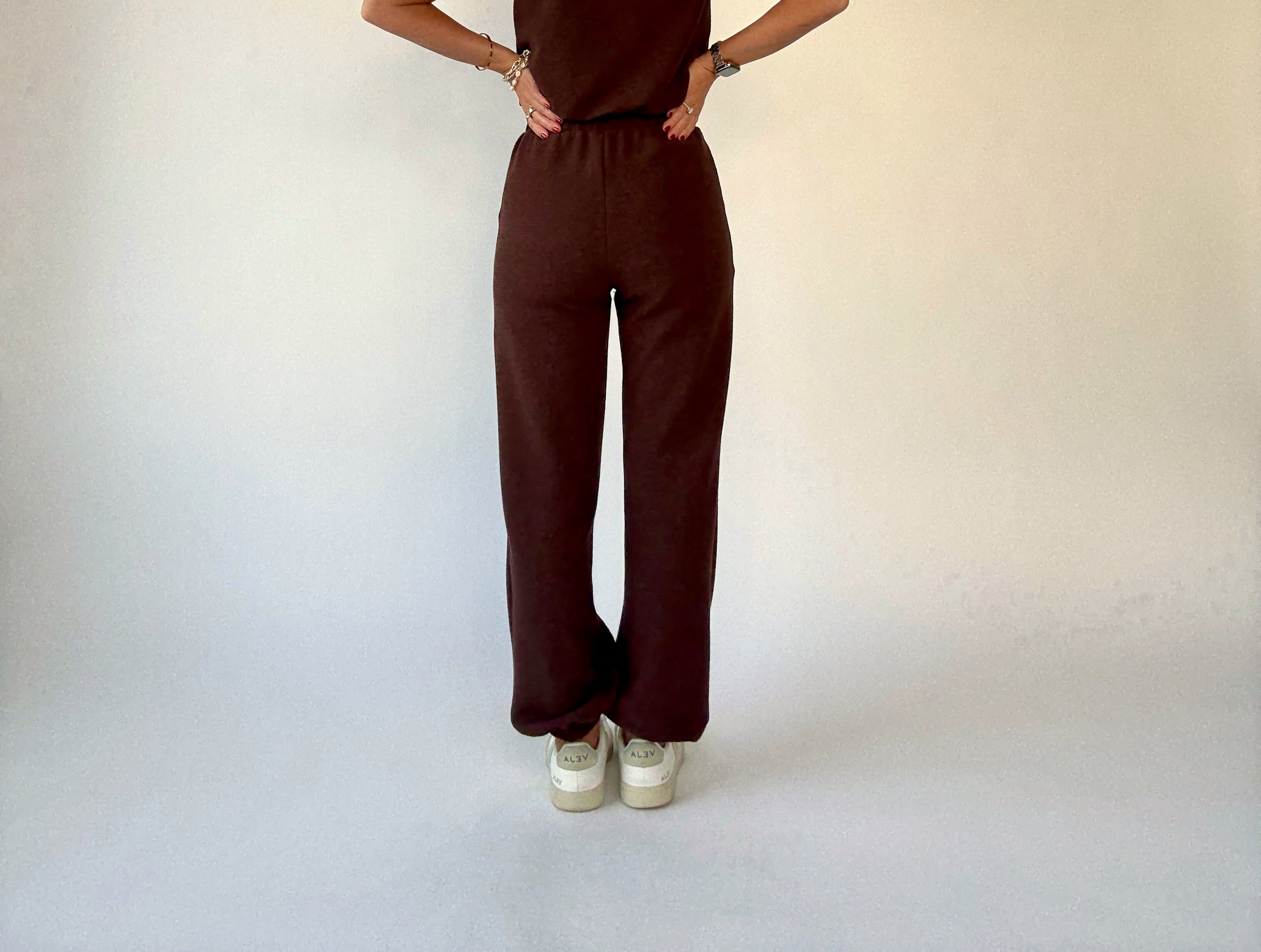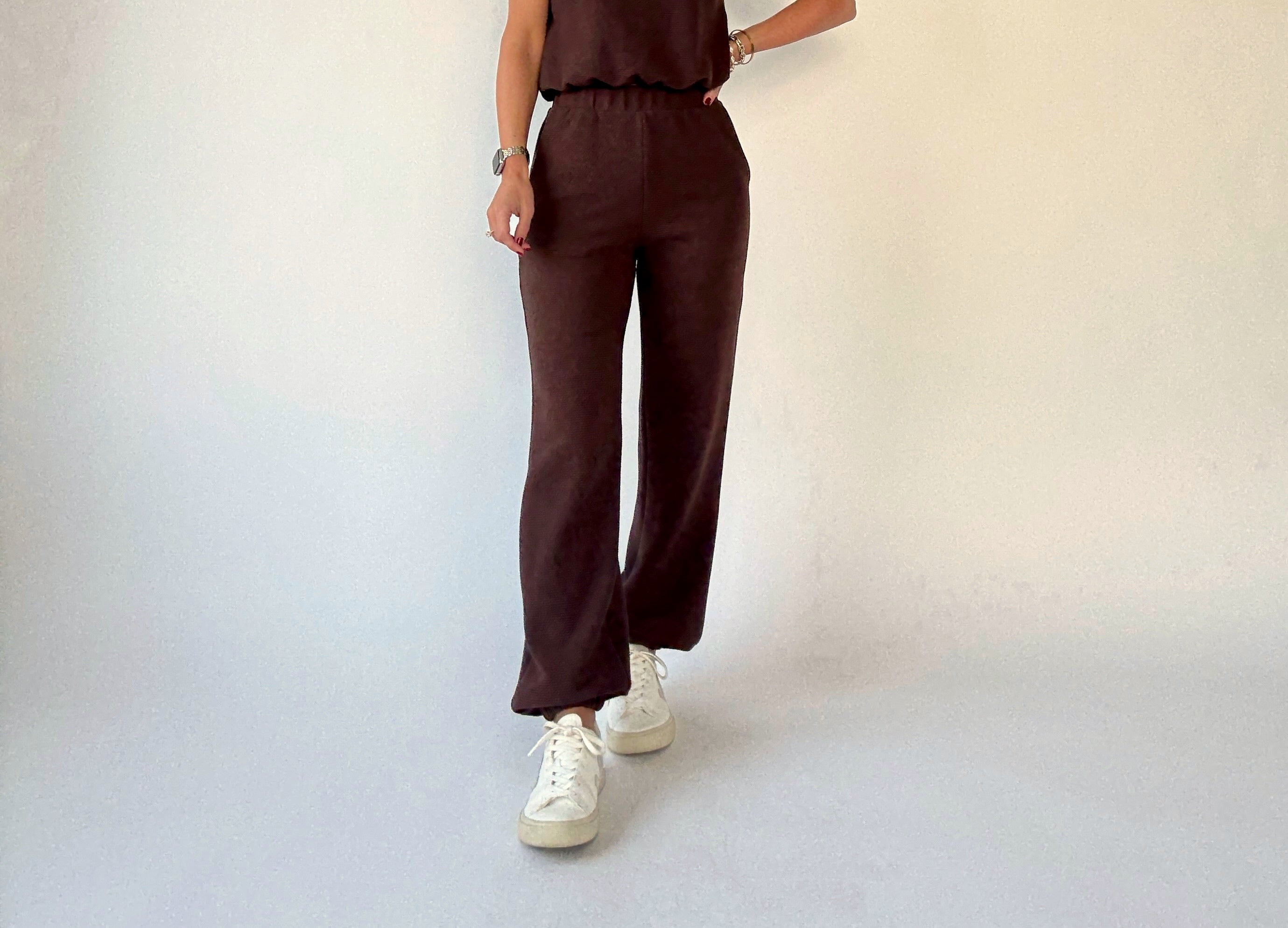 Crafted from an ultra-soft, stretchy fabric, these joggers move with you—making them ideal for travel days, lounging, or casual outings. Functional pockets add everyday ease, while the rich cocoa-mocha tone keeps the look elevated. Wear them as a matching set for a sleek, coordinated ensemble or pair with your favorite tops for versatile, effortless style wherever the day takes you.