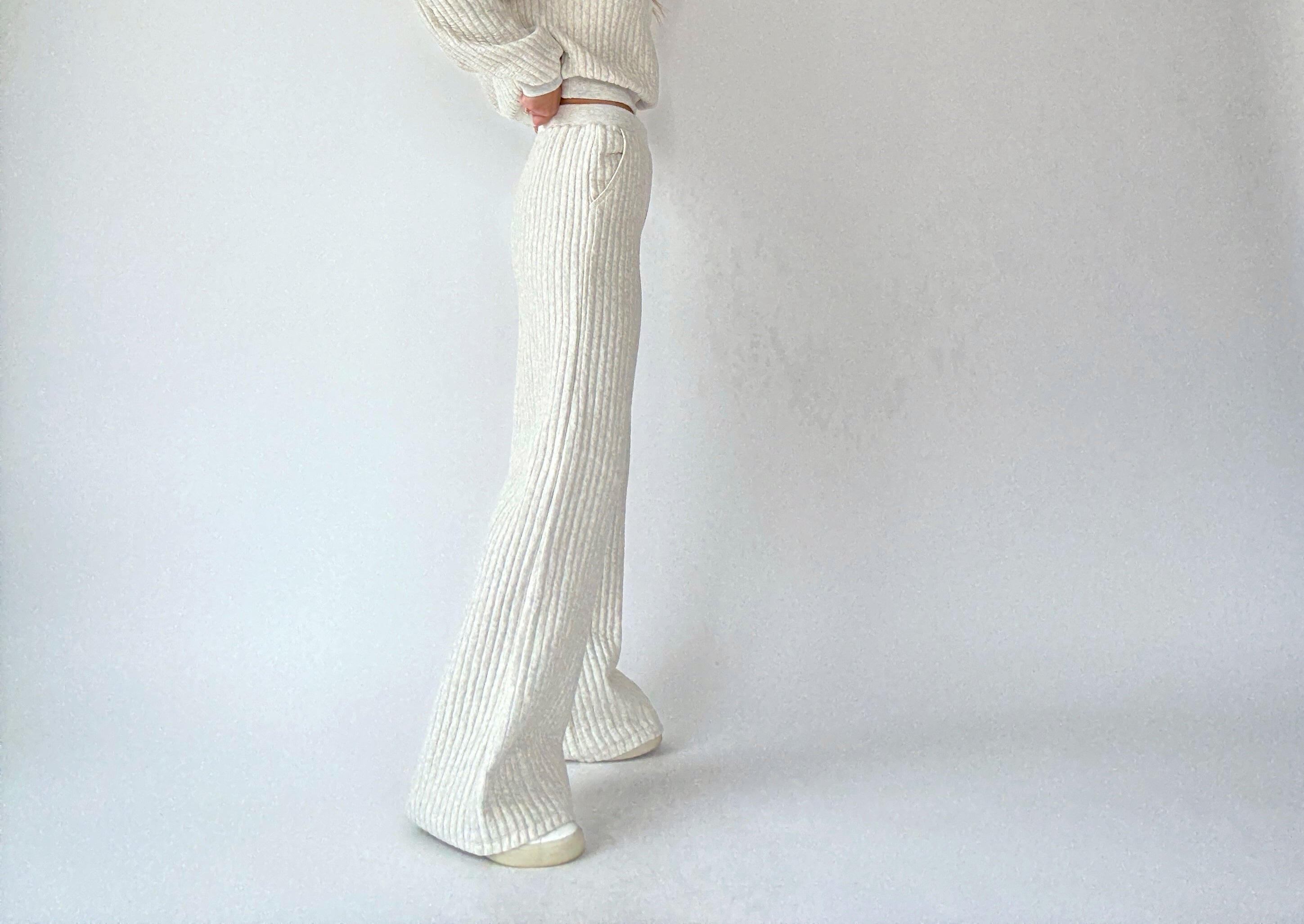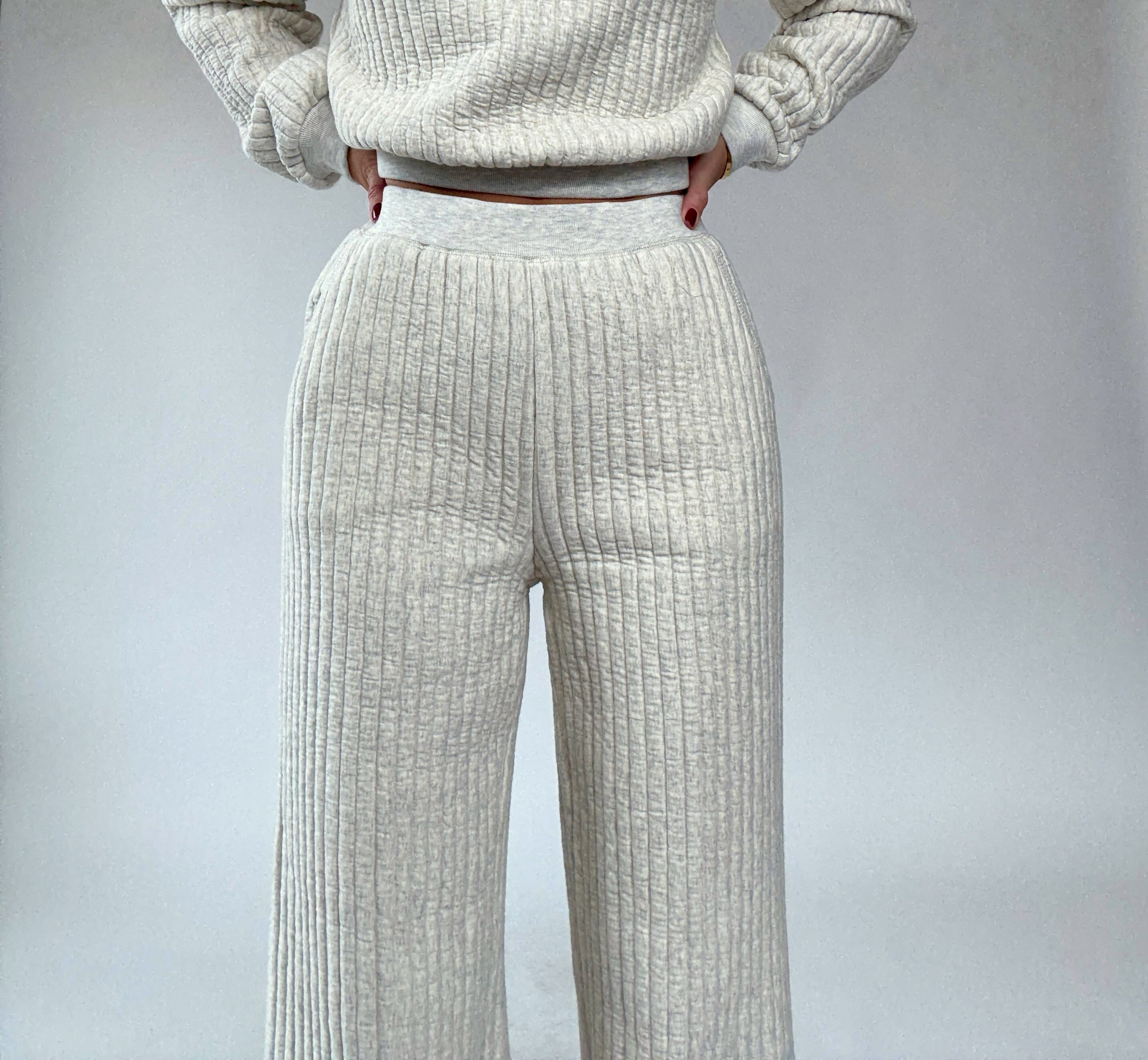 The Tranquil Moments Pants are the perfect blend of comfort and refinement. Made from the same ultra-soft, cloud-like ribbed fabric as the matching Tranquil Moments Top, these lounge pants feature vertical ribbing throughout for a flattering, elongated silhouette. Designed with a comfortable elastic waistband and convenient side pockets, they offer both ease and style for everyday wear.