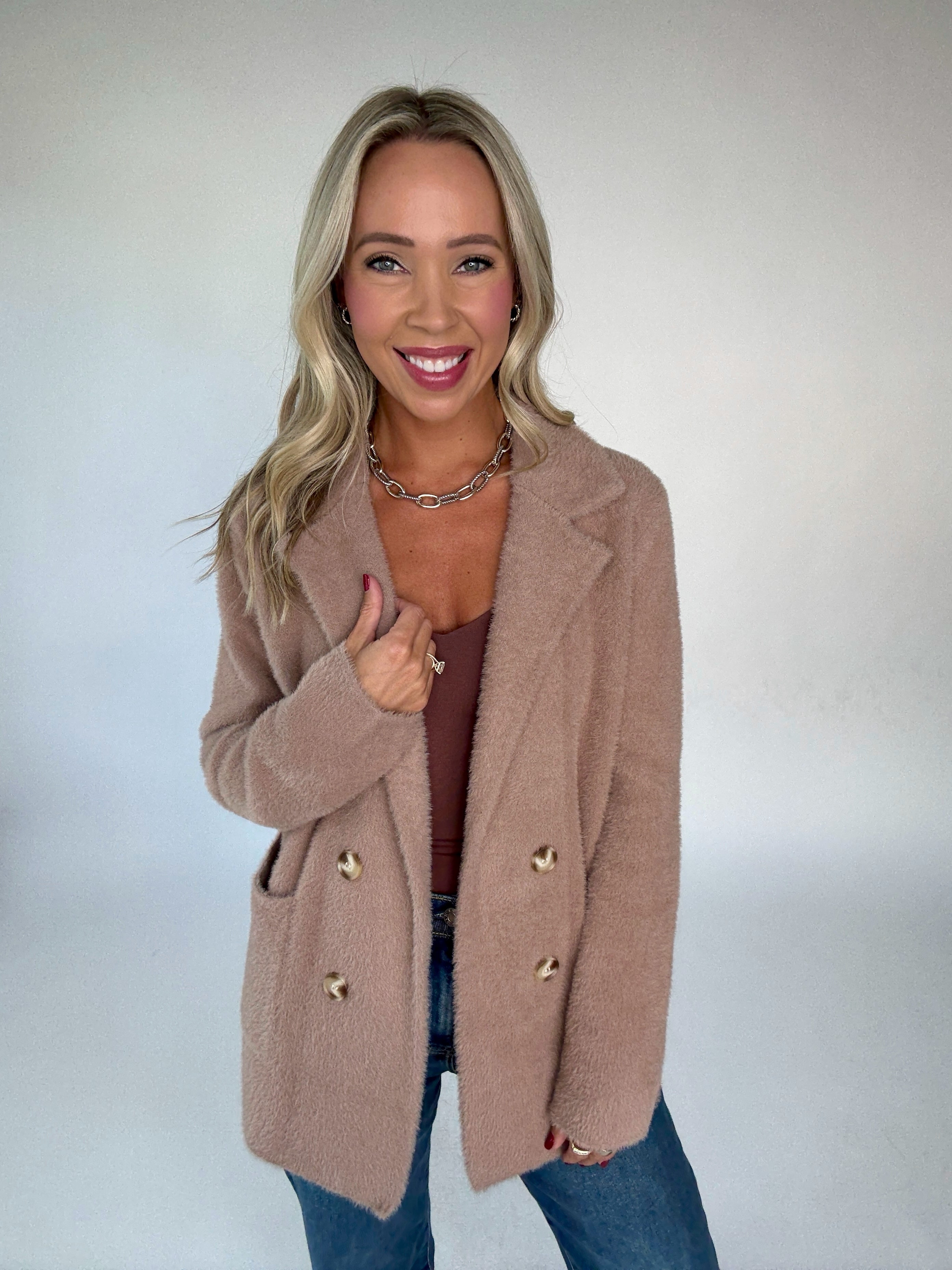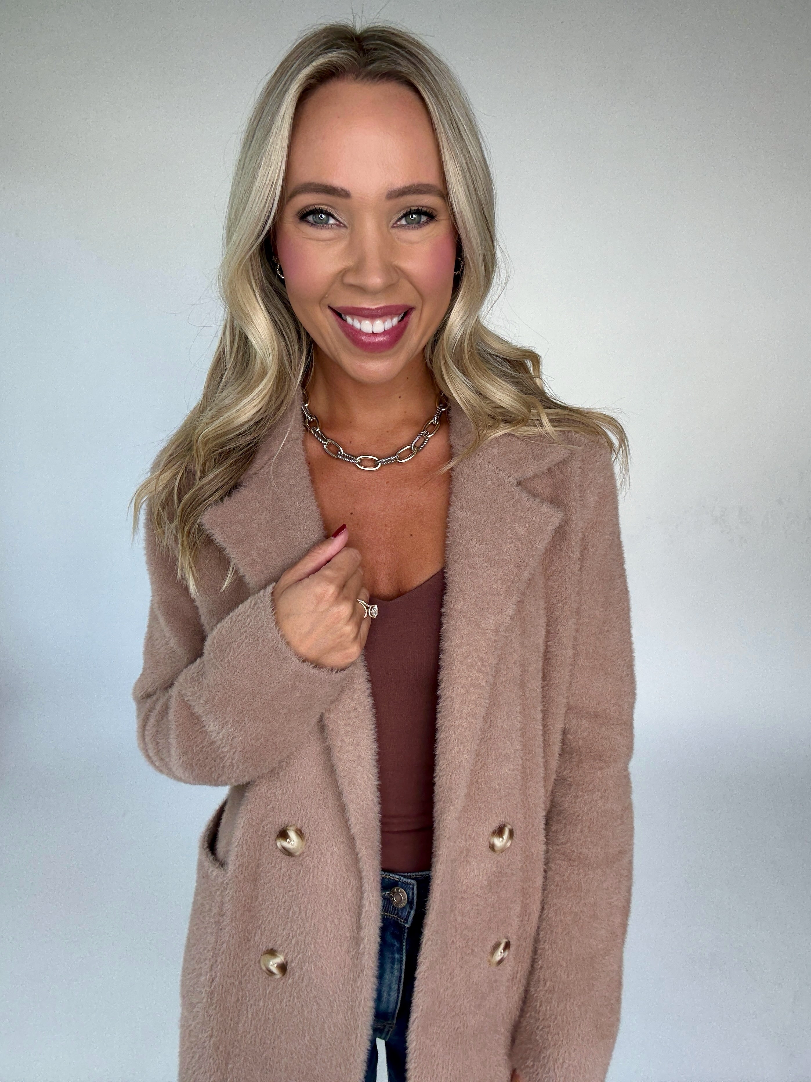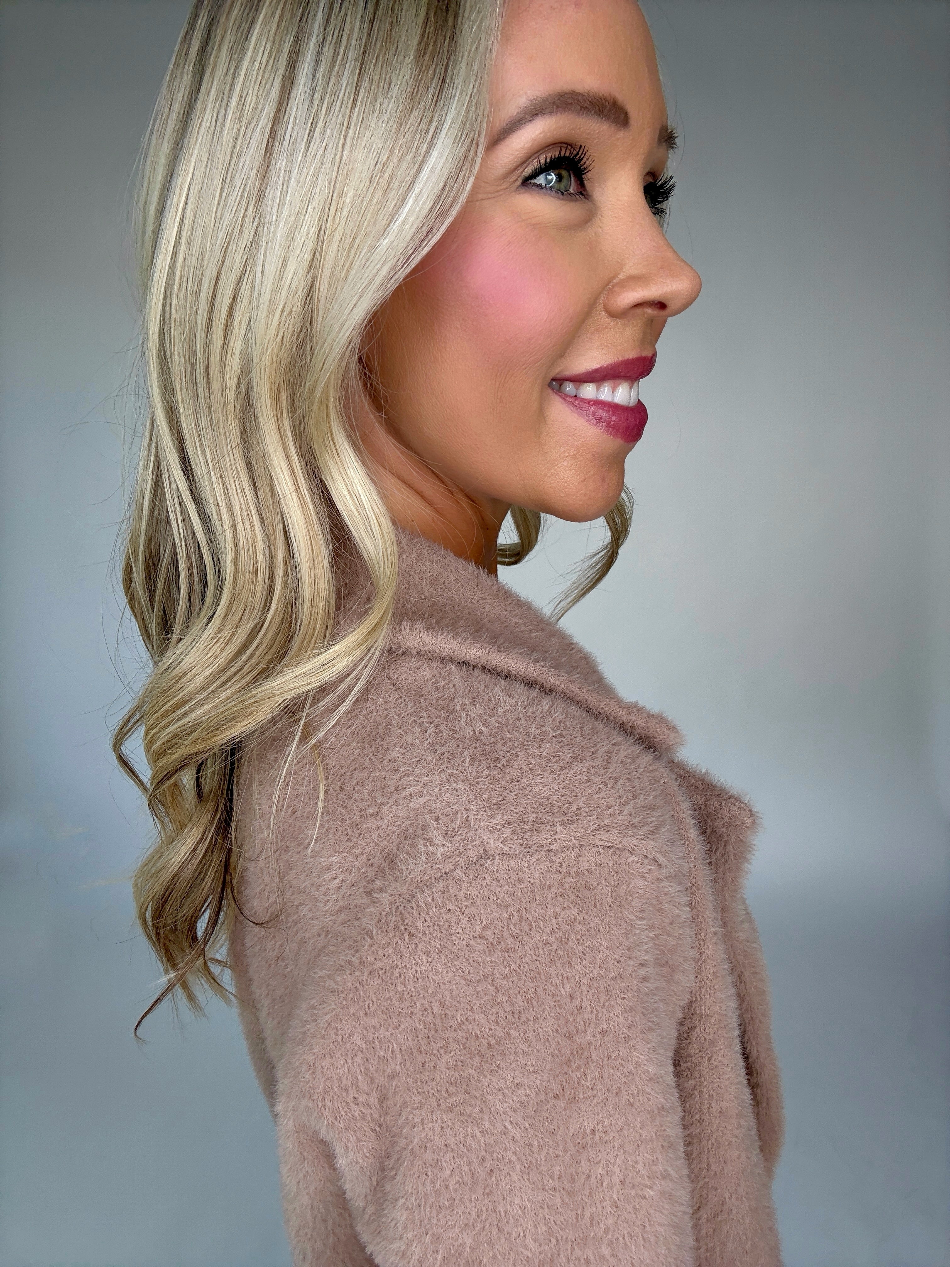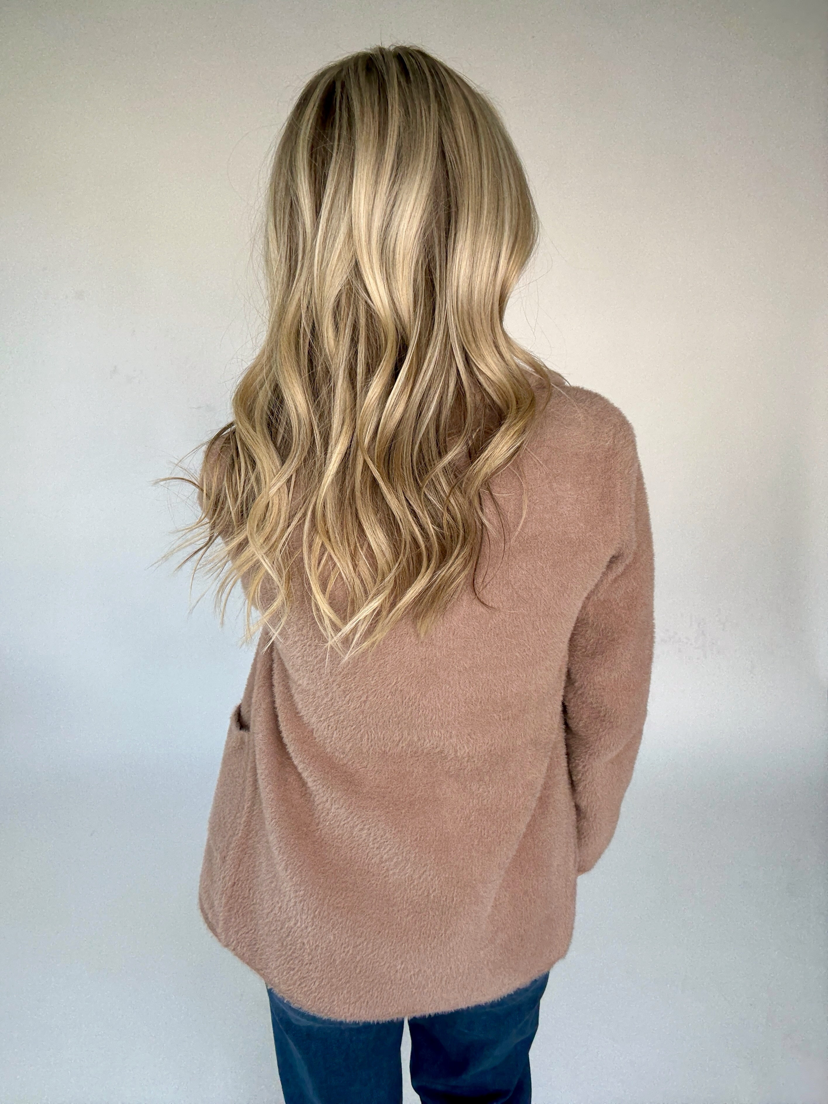 Blending the structure of a coat with the ease of a cardigan, this fully open design is crafted from irresistibly soft, fuzzy fabric that offers cozy warmth without bulk. A polished collar, chic faux front buttons, and practical patch pockets lend both style and function, making it an effortless layer for the season.