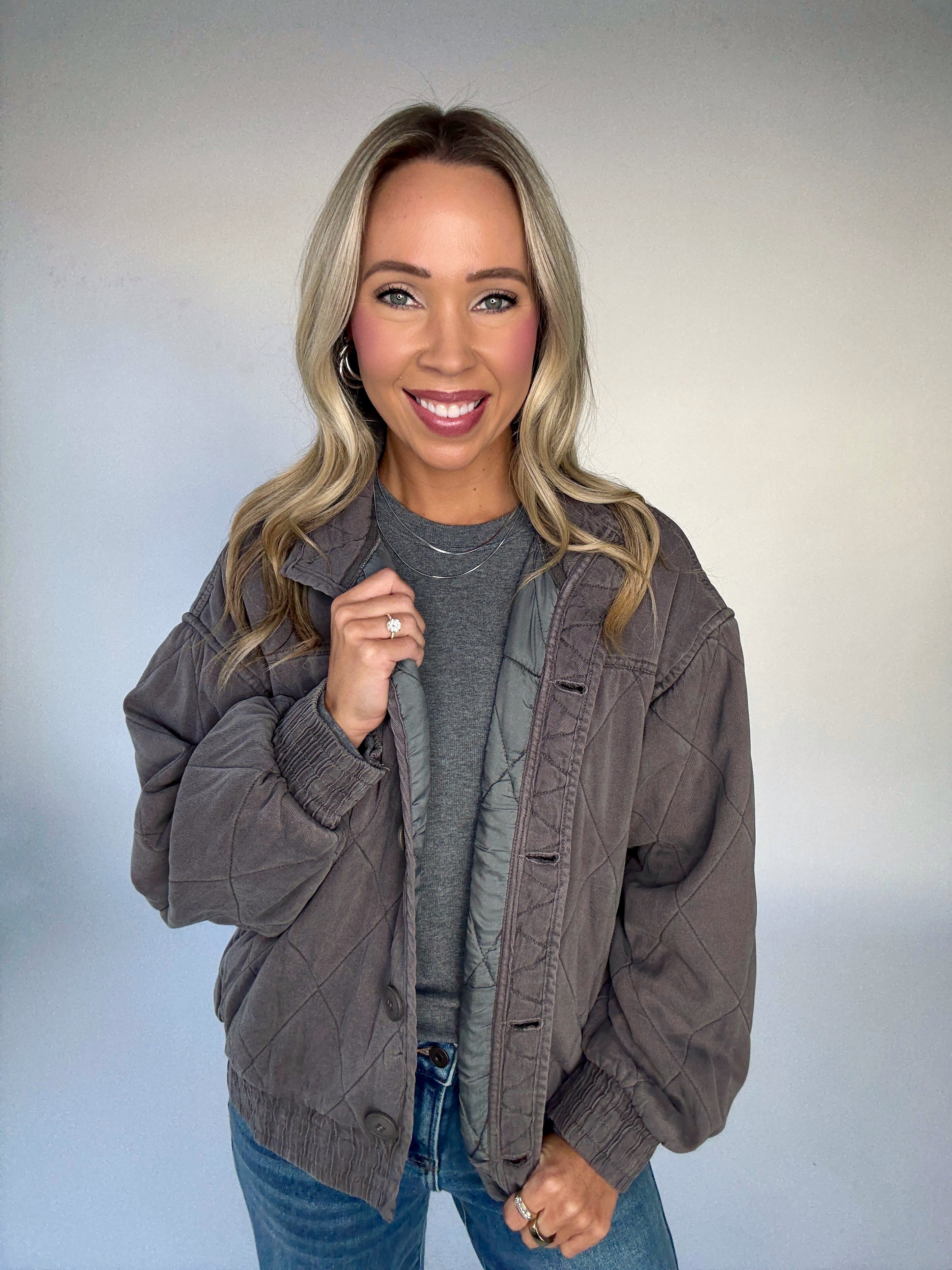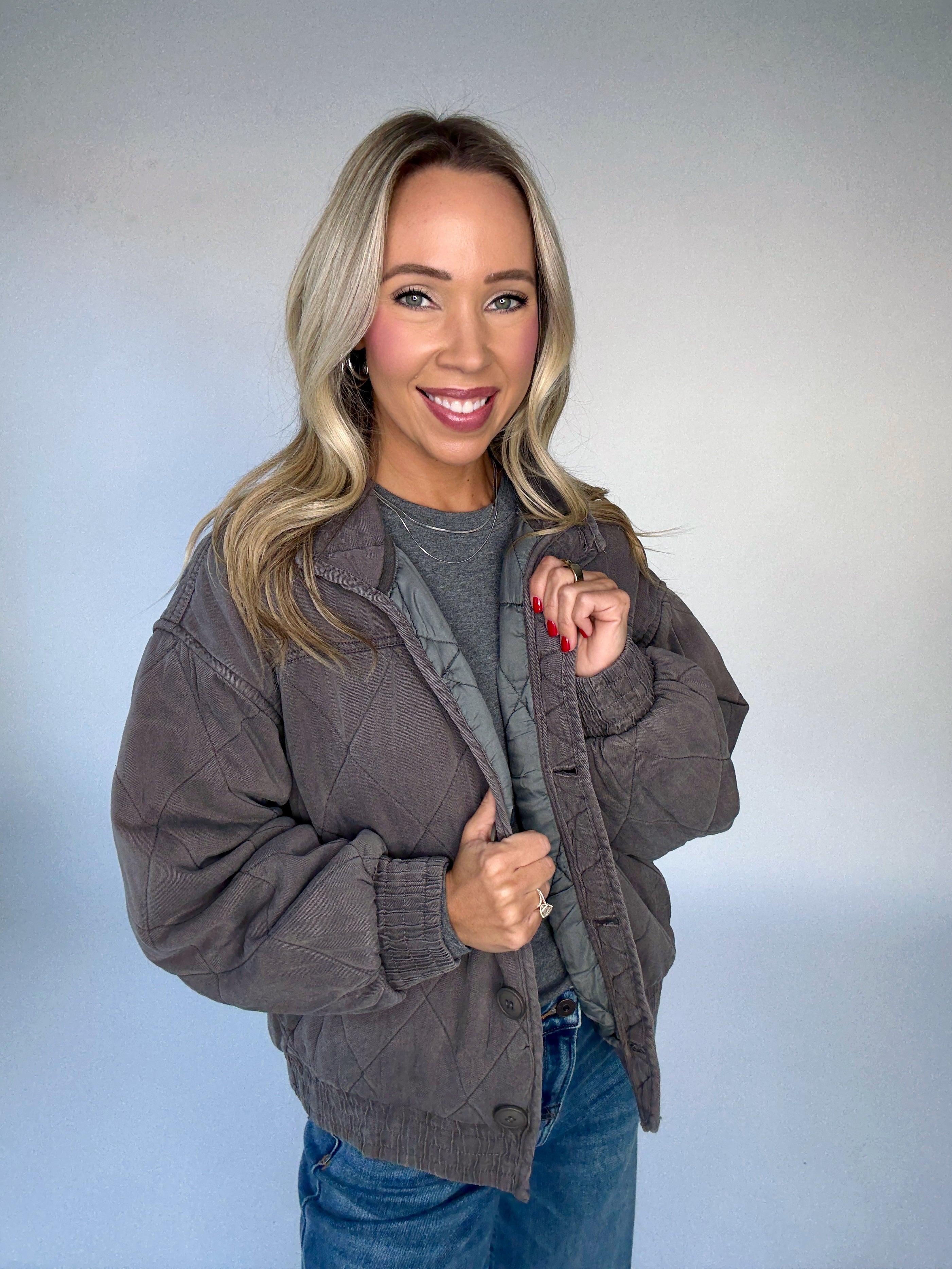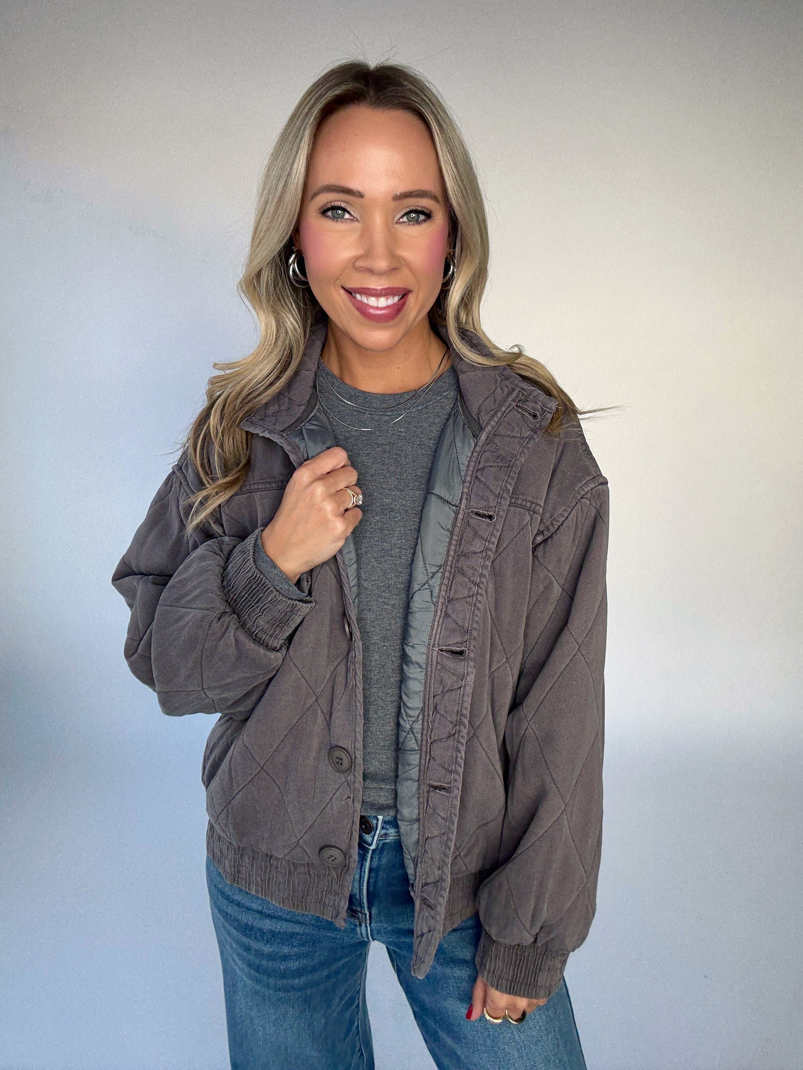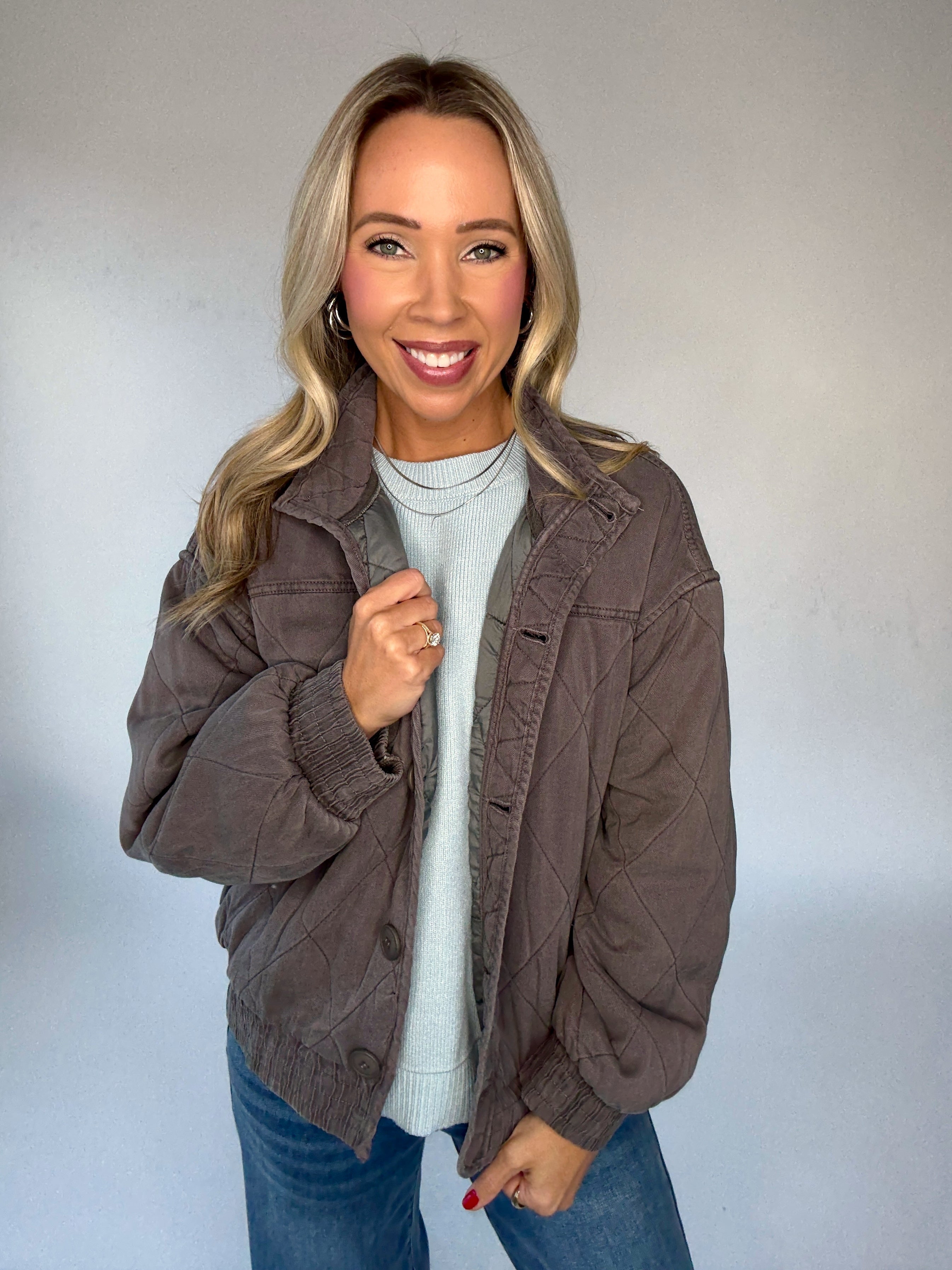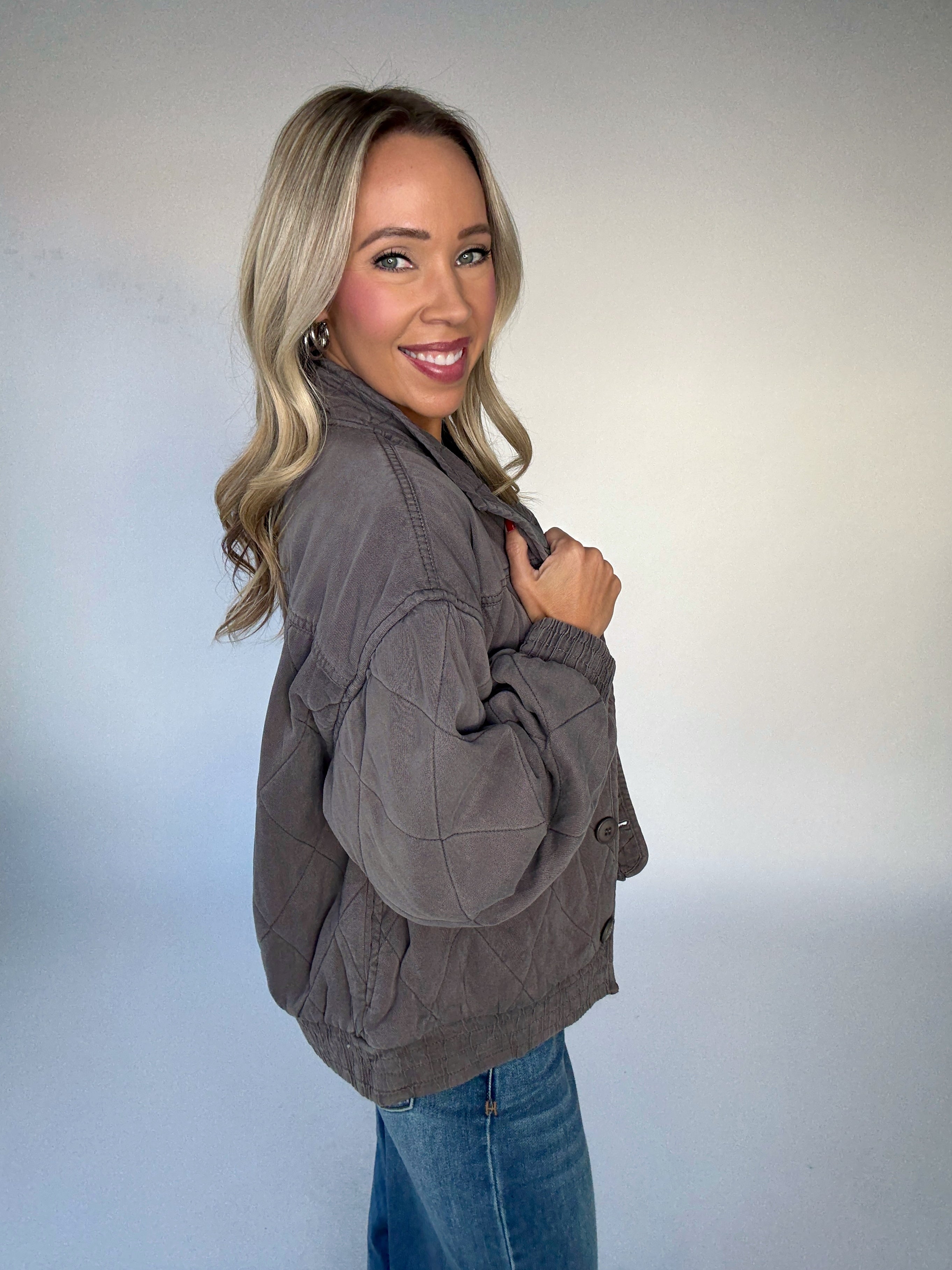 Meet your new go-to layer of comfort and style — The Quilted Layers Jacket. Designed with a beautifully quilted pattern along the lower 2/3 of the body, this button-up jacket combines timeless design with modern ease. The elastic waist and cuffs create a flattering fit, while the soft, lined interior ensures all-day comfort. Finished with large statement buttons, side pockets, and a classic collar, it’s the perfect piece to throw on over any casual look — from jeans to joggers.