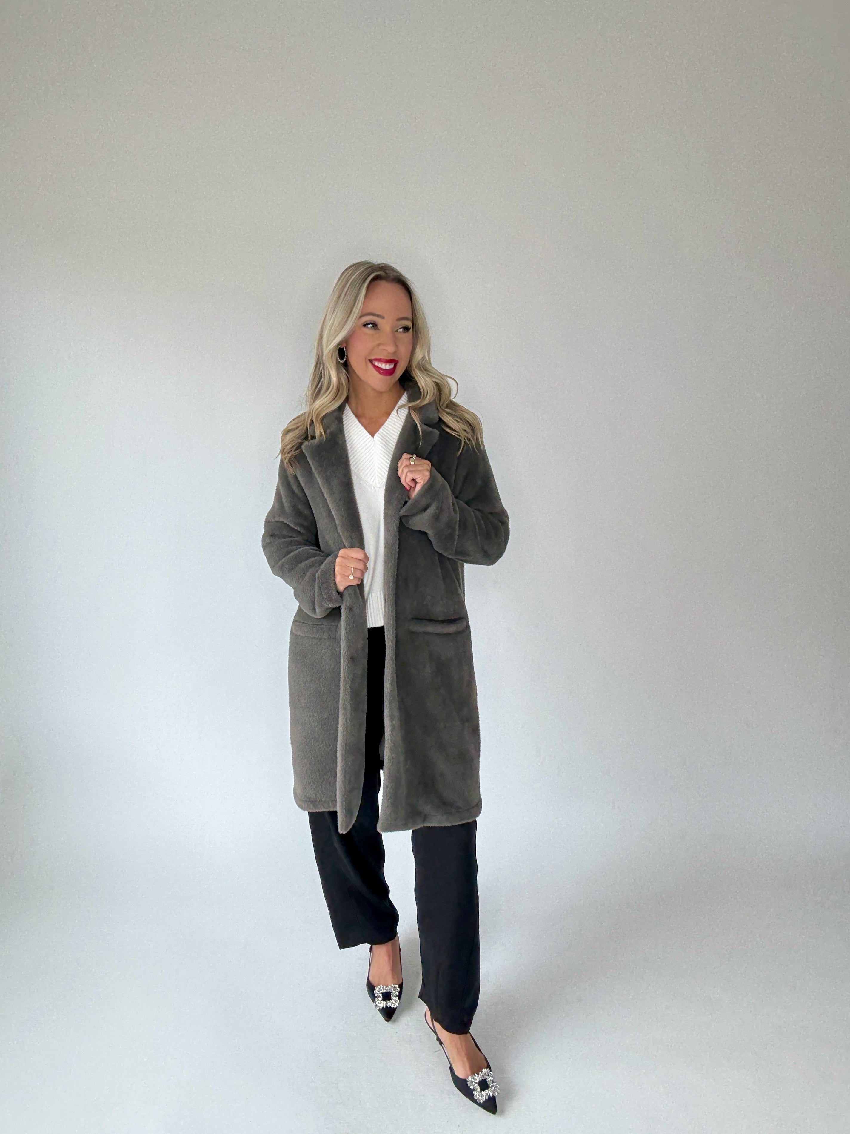 The plush texture and tailored silhouette make it the perfect outer layer to elevate any look, from casual denim to dressy evening attire. Pair it with our Adler Boots for an effortlessly polished winter ensemble.