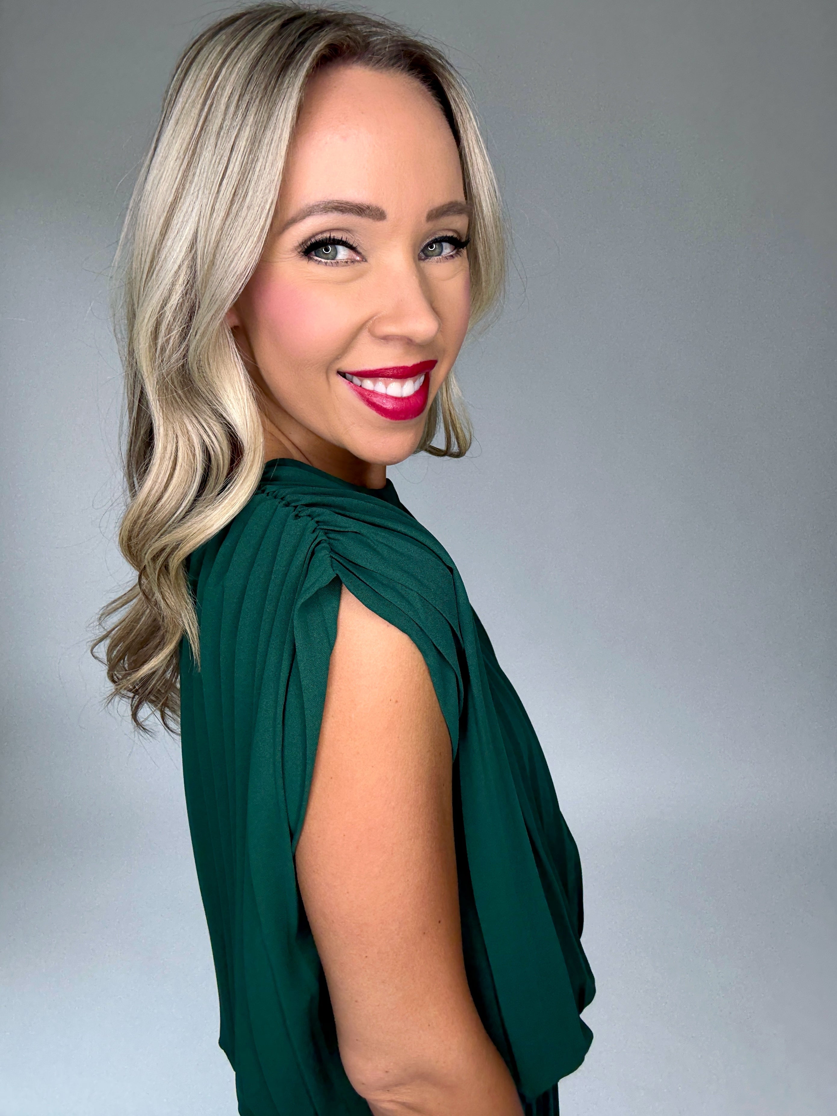 Designed in a rich evergreen hue, it pairs beautifully with the coordinating Mistletoe Moments Pants for a chic matching set. Ideal for holiday parties, festive date nights, or elegant gatherings, this top captures the spirit of the season in timeless style.