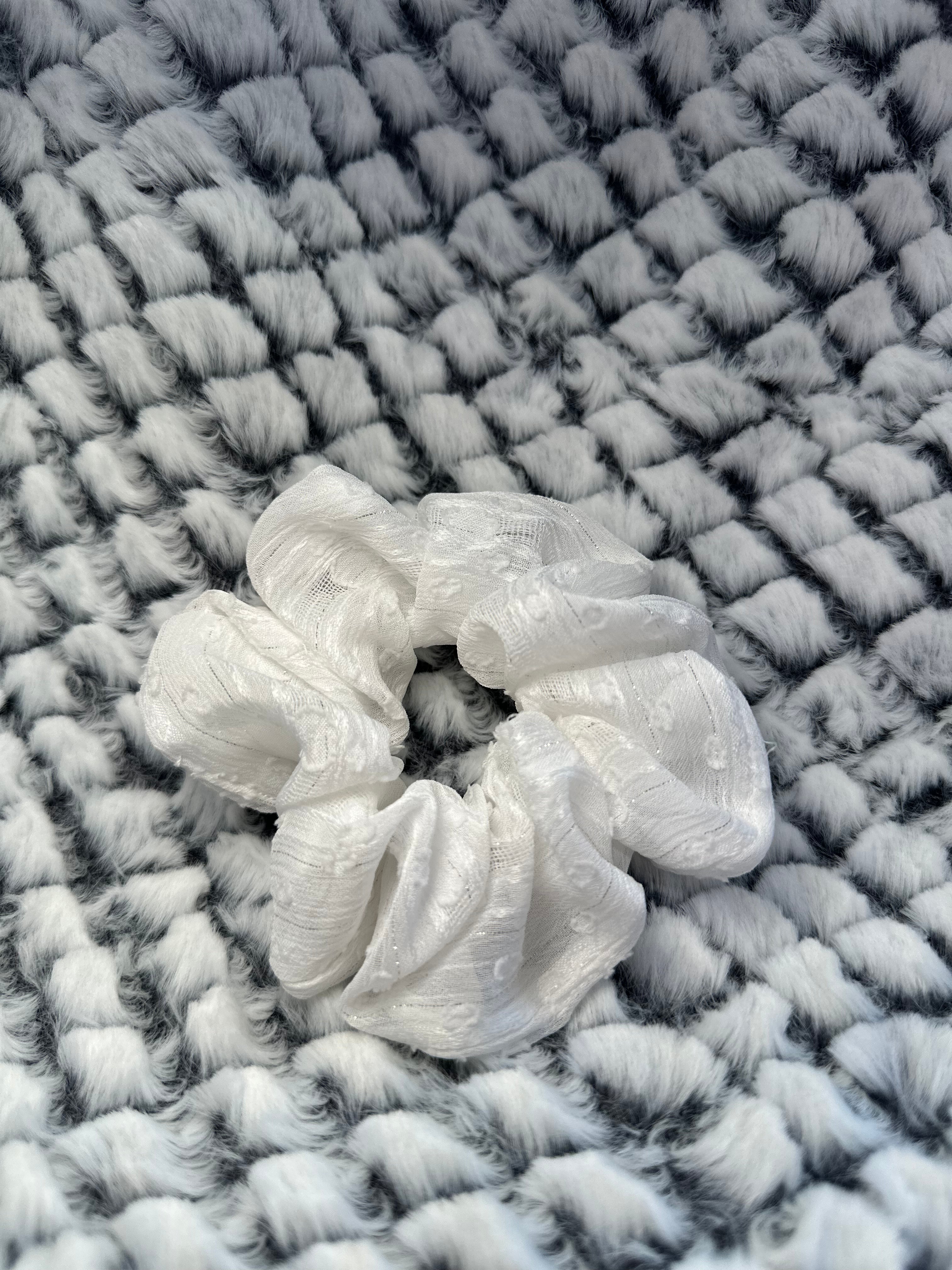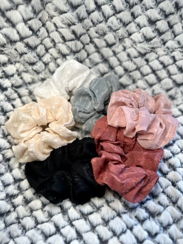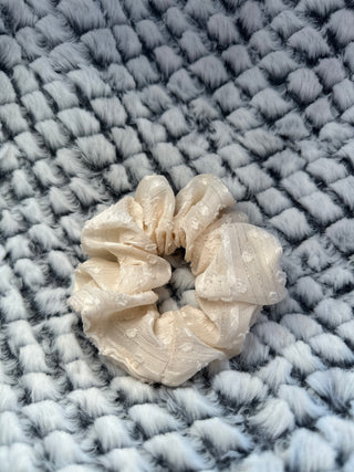 Meet the Isla scrunchie! She's super soft and has the prettiest subtle shimmer throughout. Scrunchies are healthy for your hair as they create less breakage than regular elastic hair ties.