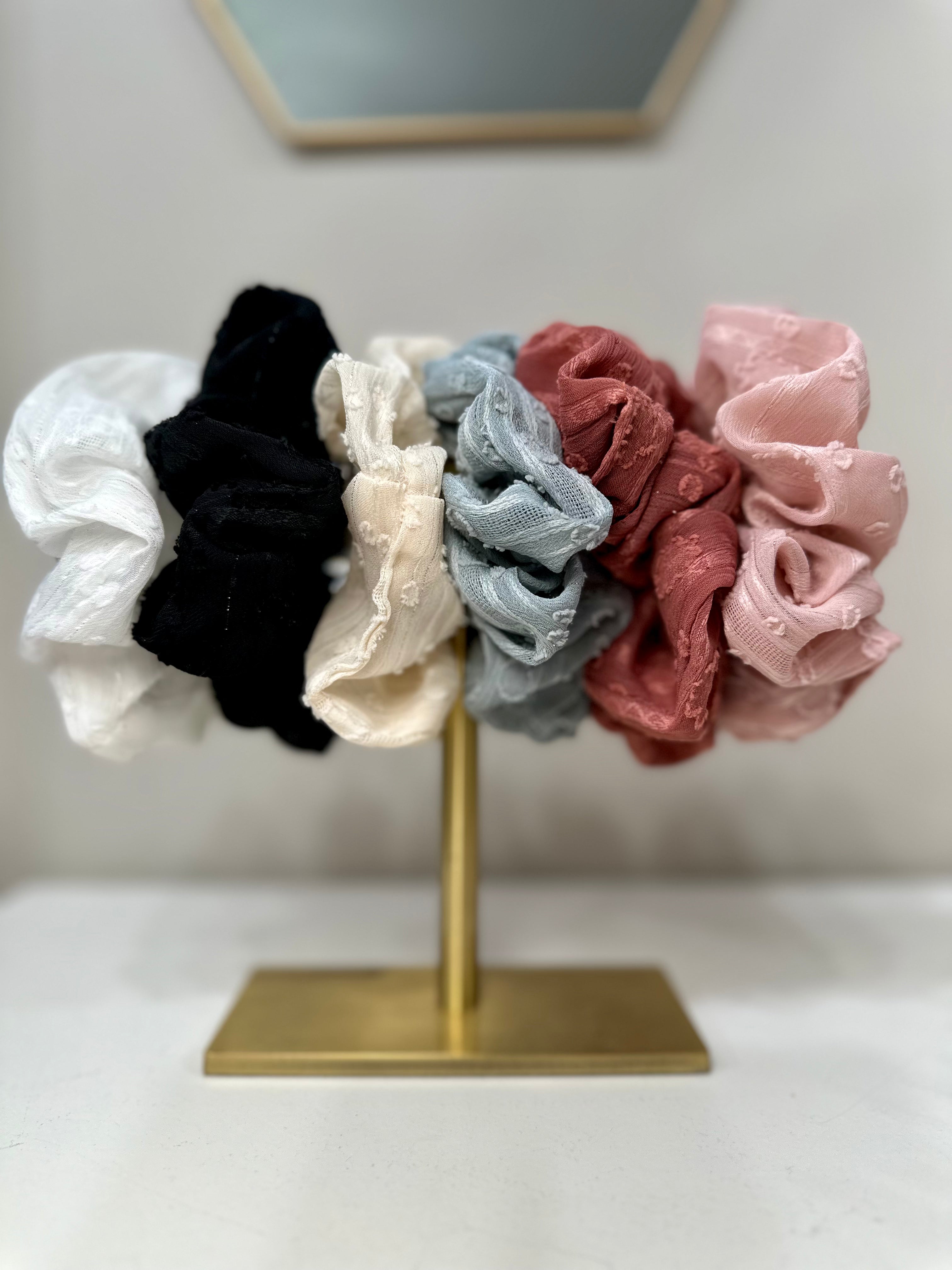 The Isla scrunchie makes the cutest gift, perfect as a stocking stuffer, a hostess gift (wrap it around a bottle of wine), or grab one of each color for your next girls night in!