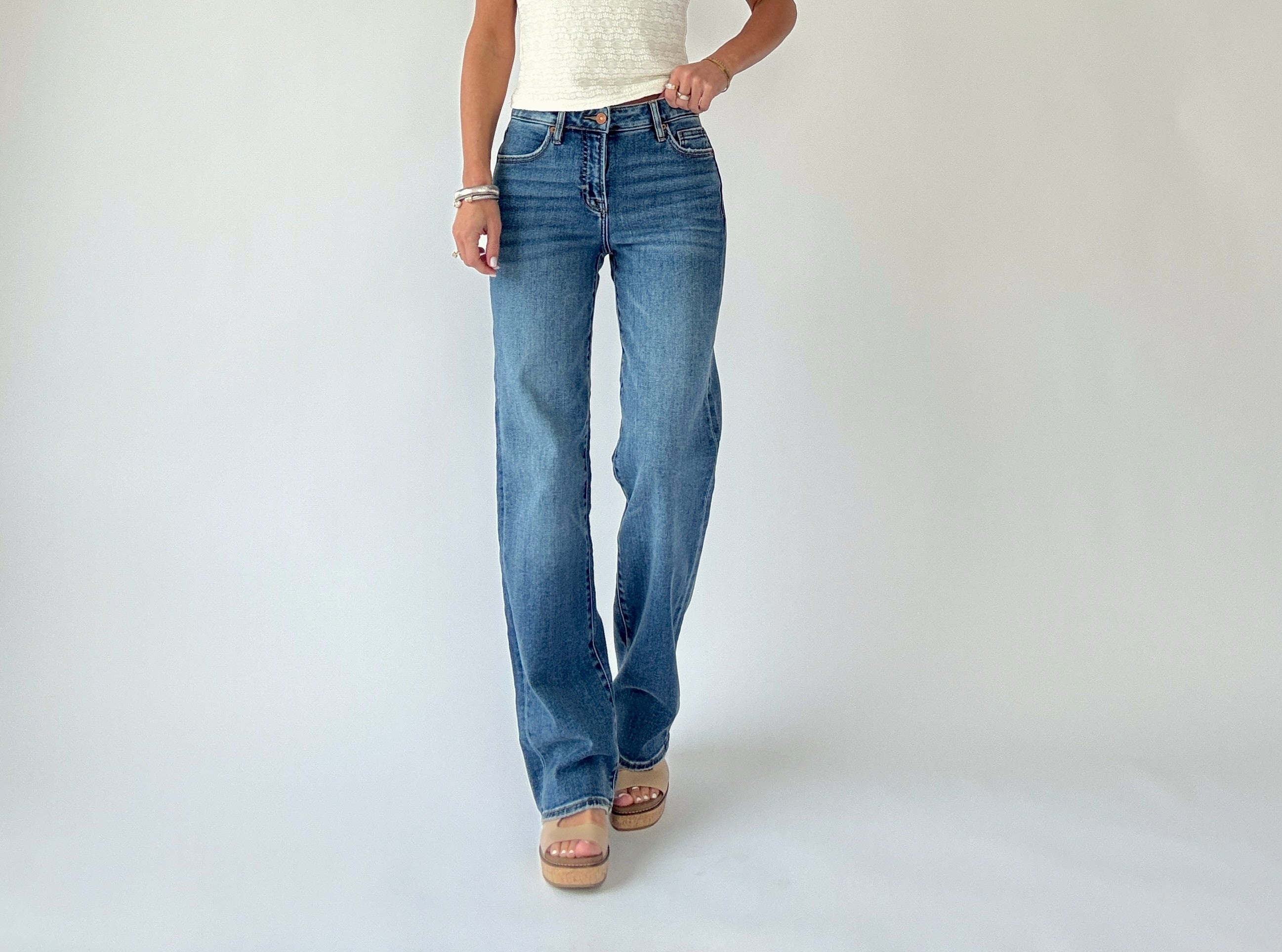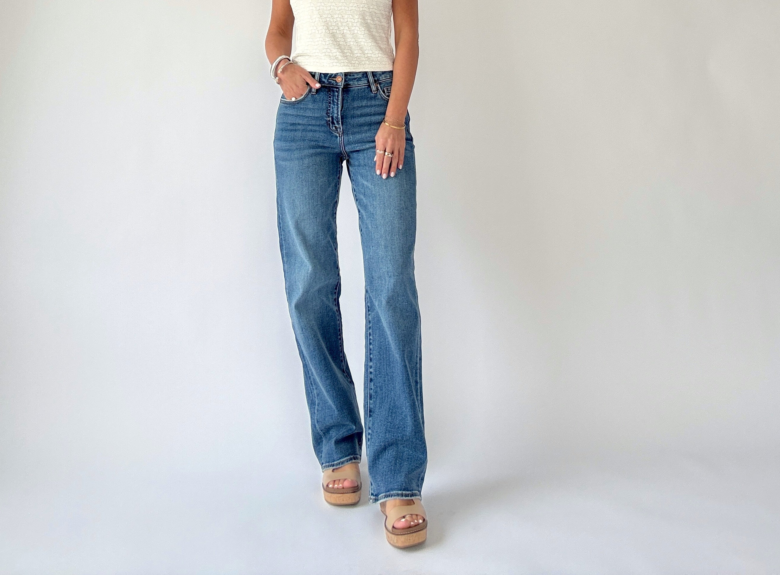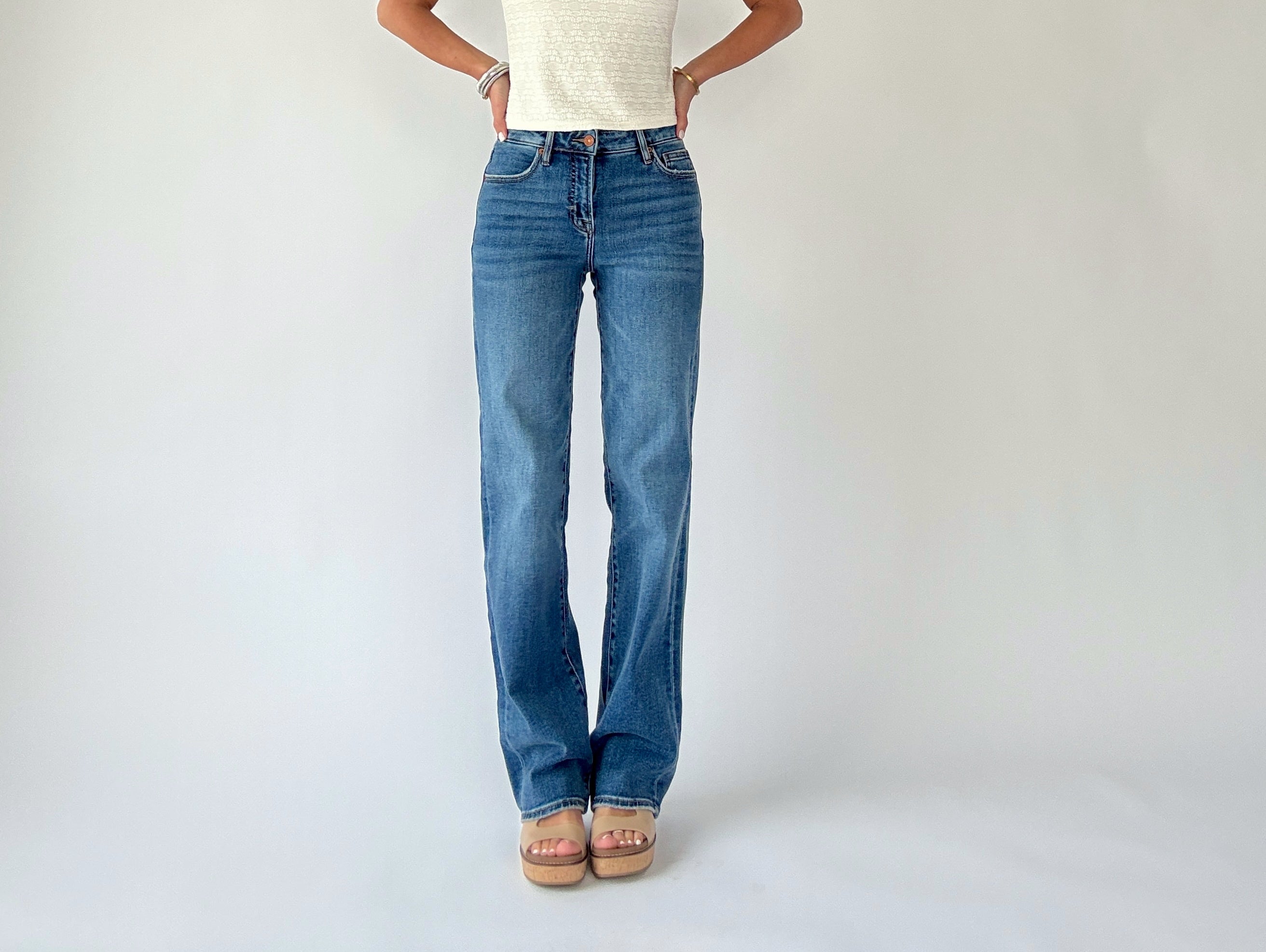 Easy to dress up or down, these jeans pair seamlessly with any sweater, blouse, or everyday top. Whether styled with boots for a chic finish or sneakers for a relaxed look, the Ella High Rise Classic Straight Jeans deliver comfort, versatility, and timeless style in every wear.