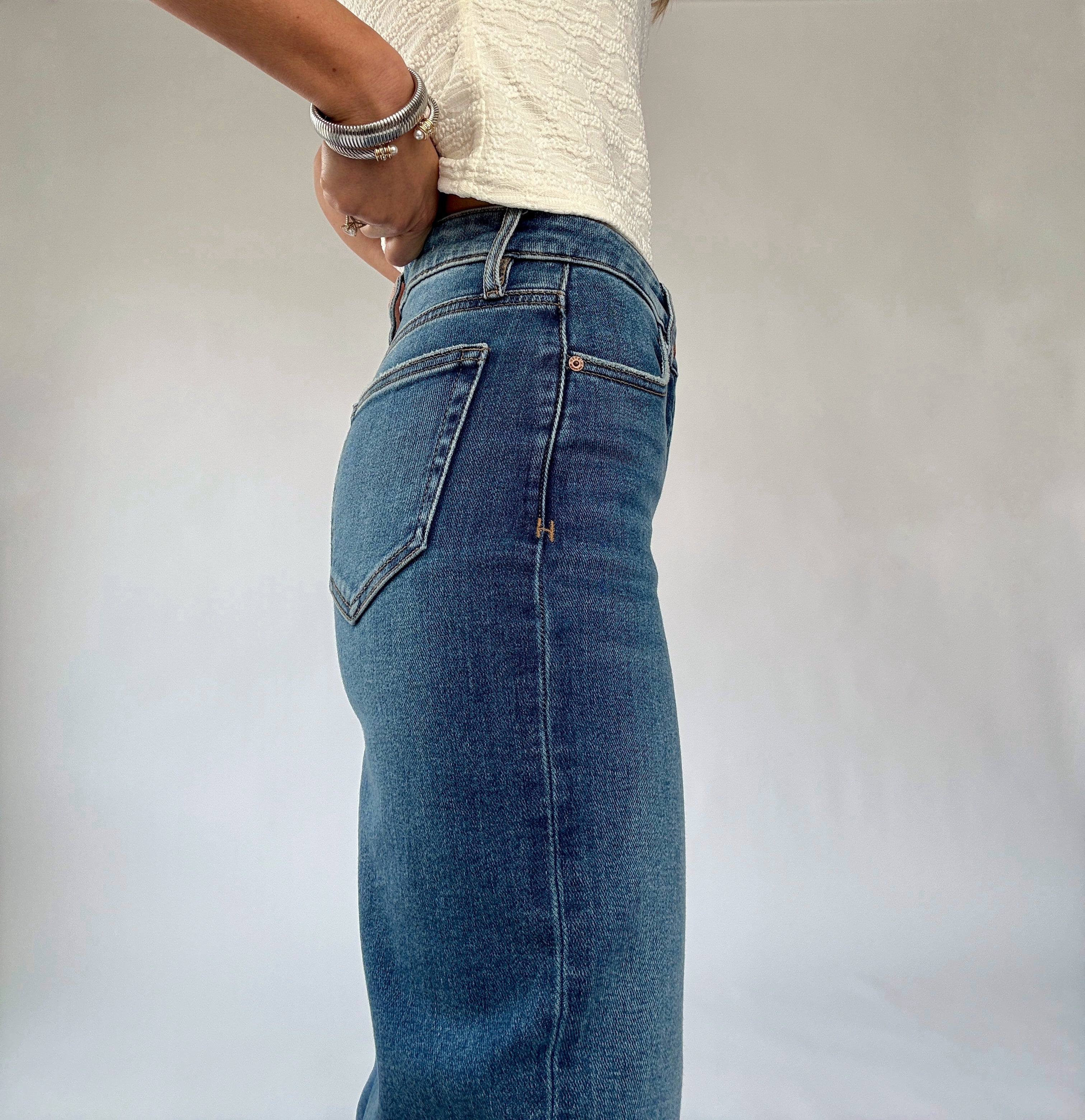 Designed with a true-to-size fit, the Ella features a high-rise waist, a straight leg cut, and a 29.5" inseam—creating a clean, elongating line that complements any figure. The traditional zipper fly and button closure keep the look refined and effortlessly classic.
