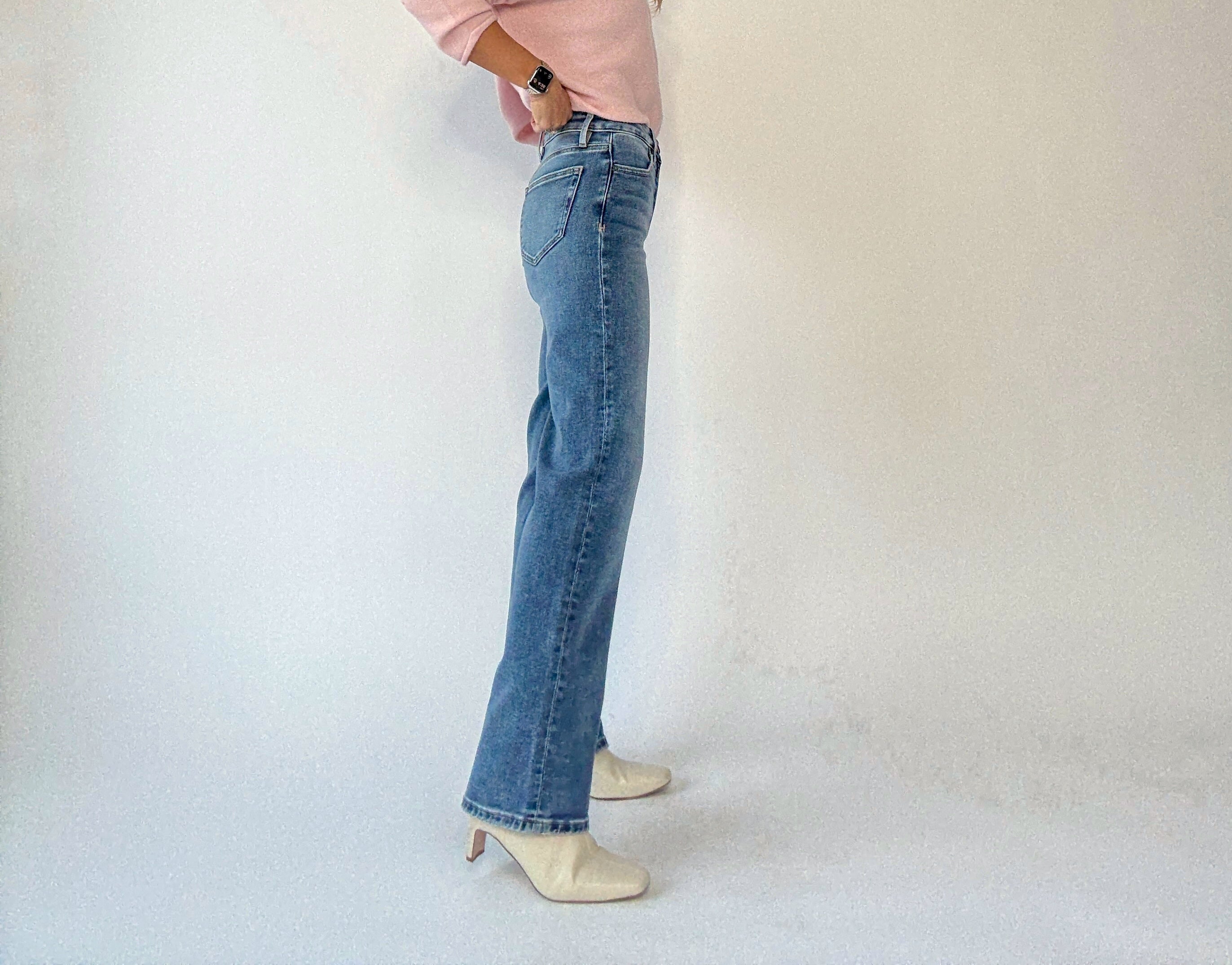 Timeless, flattering, and endlessly versatile, the Ella High Rise Classic Straight Jeans are a wardrobe essential you’ll reach for season after season. Crafted in a rich medium wash, this classic-style denim offers a soft, stretchy feel that moves with you while maintaining its polished silhouette.