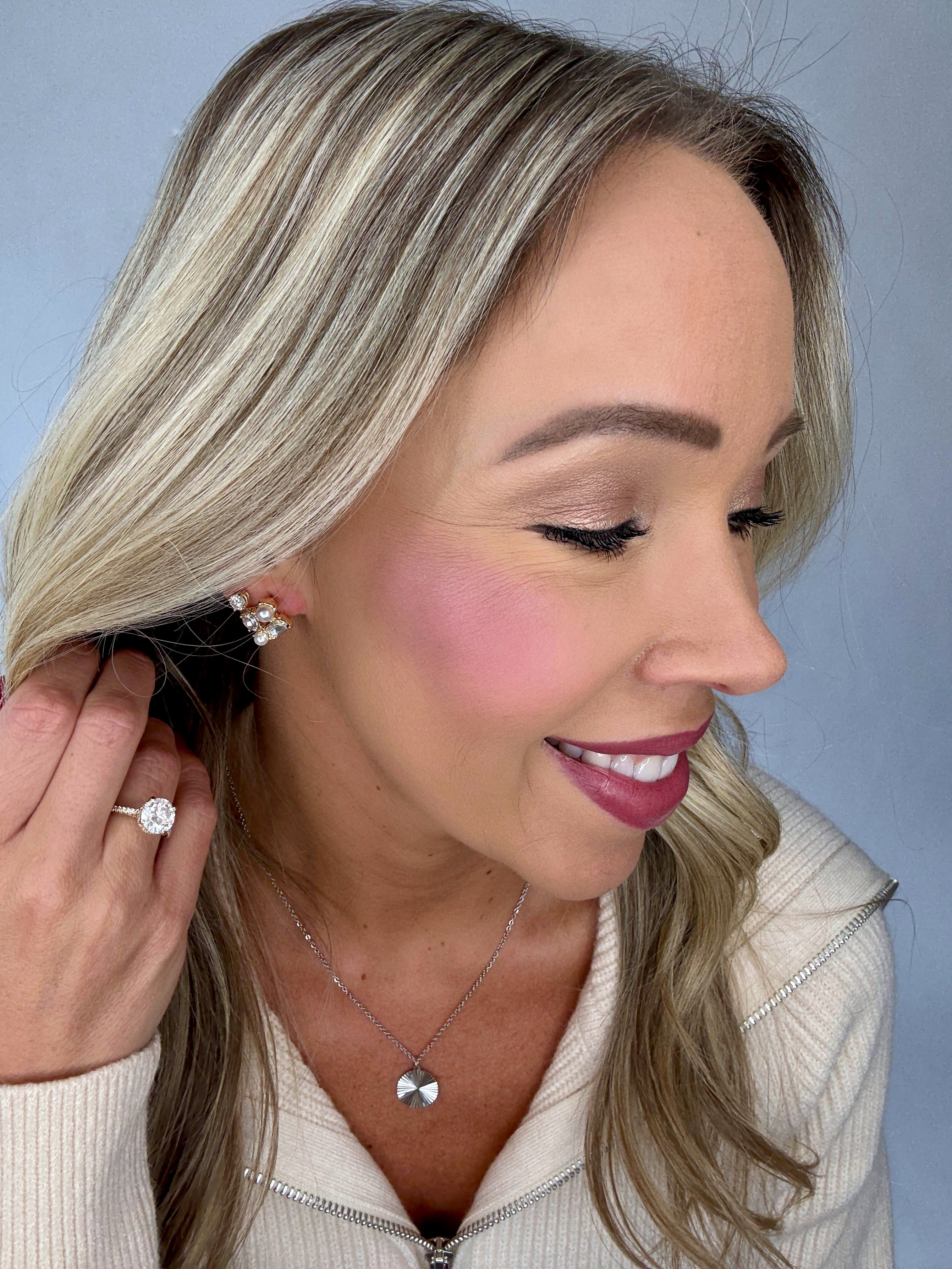 Their glossy shine makes them stand out beautifully in the hair, offering a subtle yet irresistible pop that enhances both everyday style and more dressed-up looks. Whether paired with a sleek blouse, a timeless dress, or your favorite evening pieces, The Eclipse Pearl & Diamond Earrings deliver effortless sophistication with every wear.