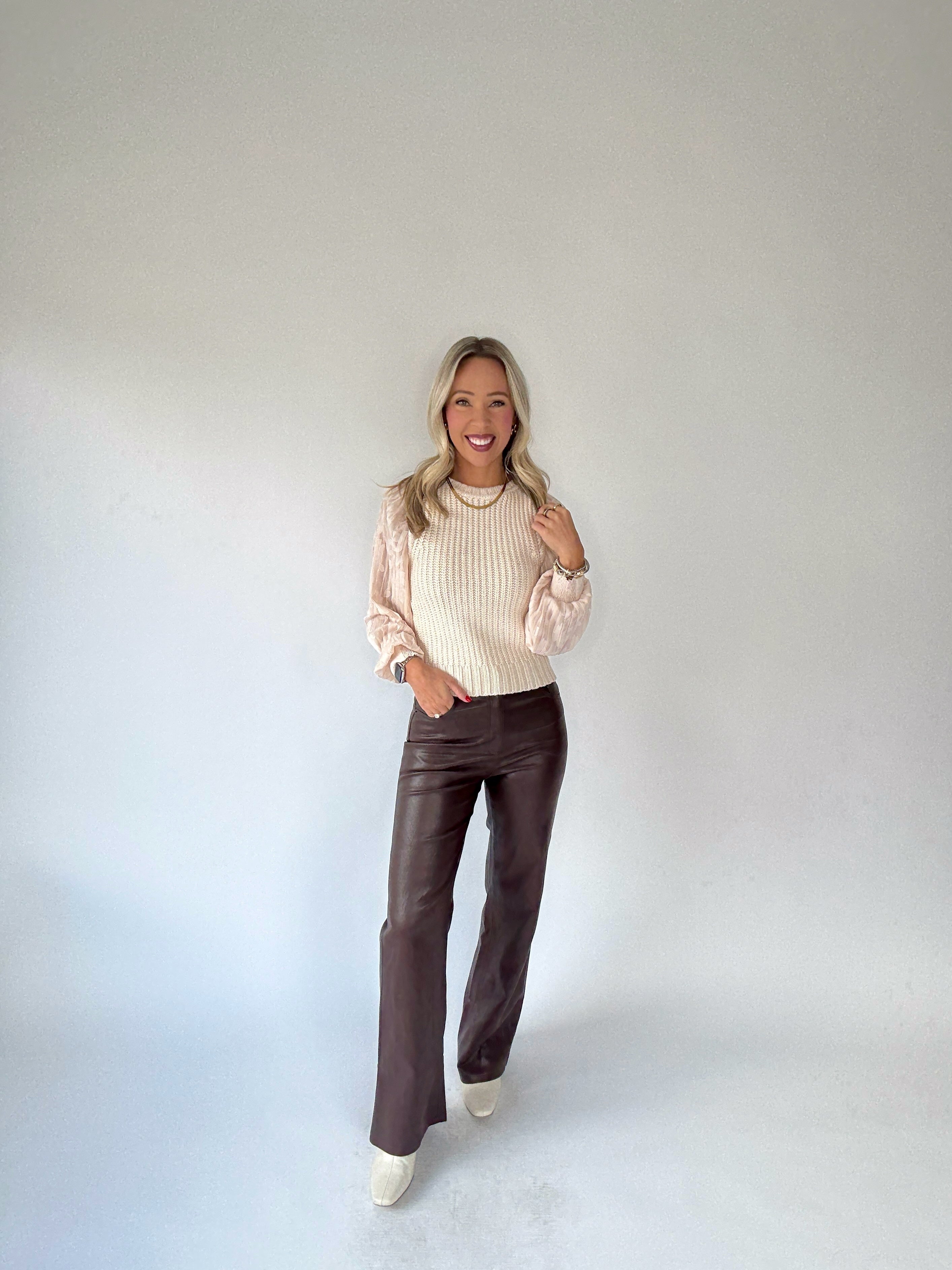Perfectly styled with our Chocolate Love Vegan Leather Skirt for a polished ensemble, or paired with denim for a casually elegant look, this sweater is a versatile staple for transitional seasonal dressing.