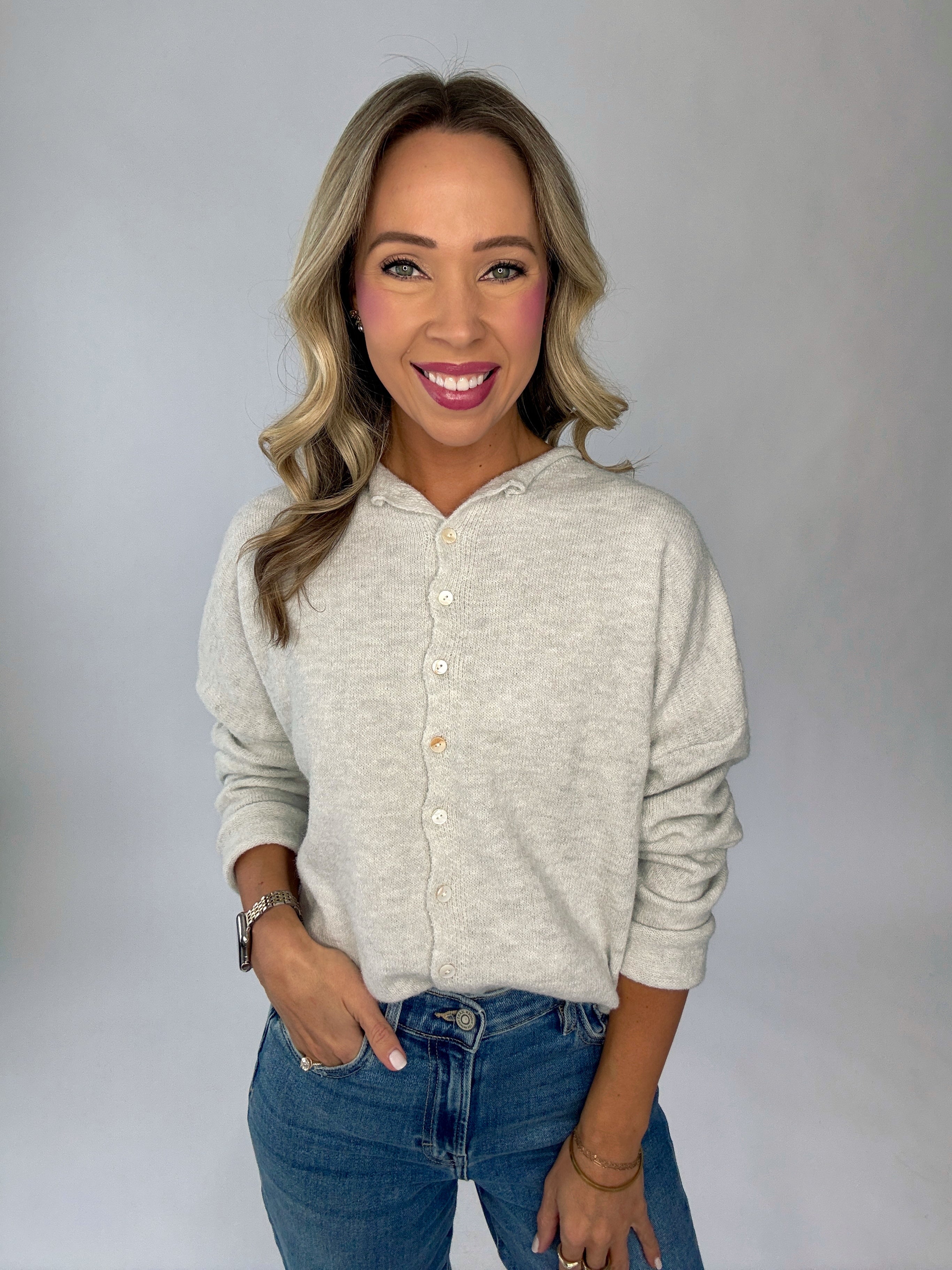 Simple And Sweet Cardigan - Light Grey