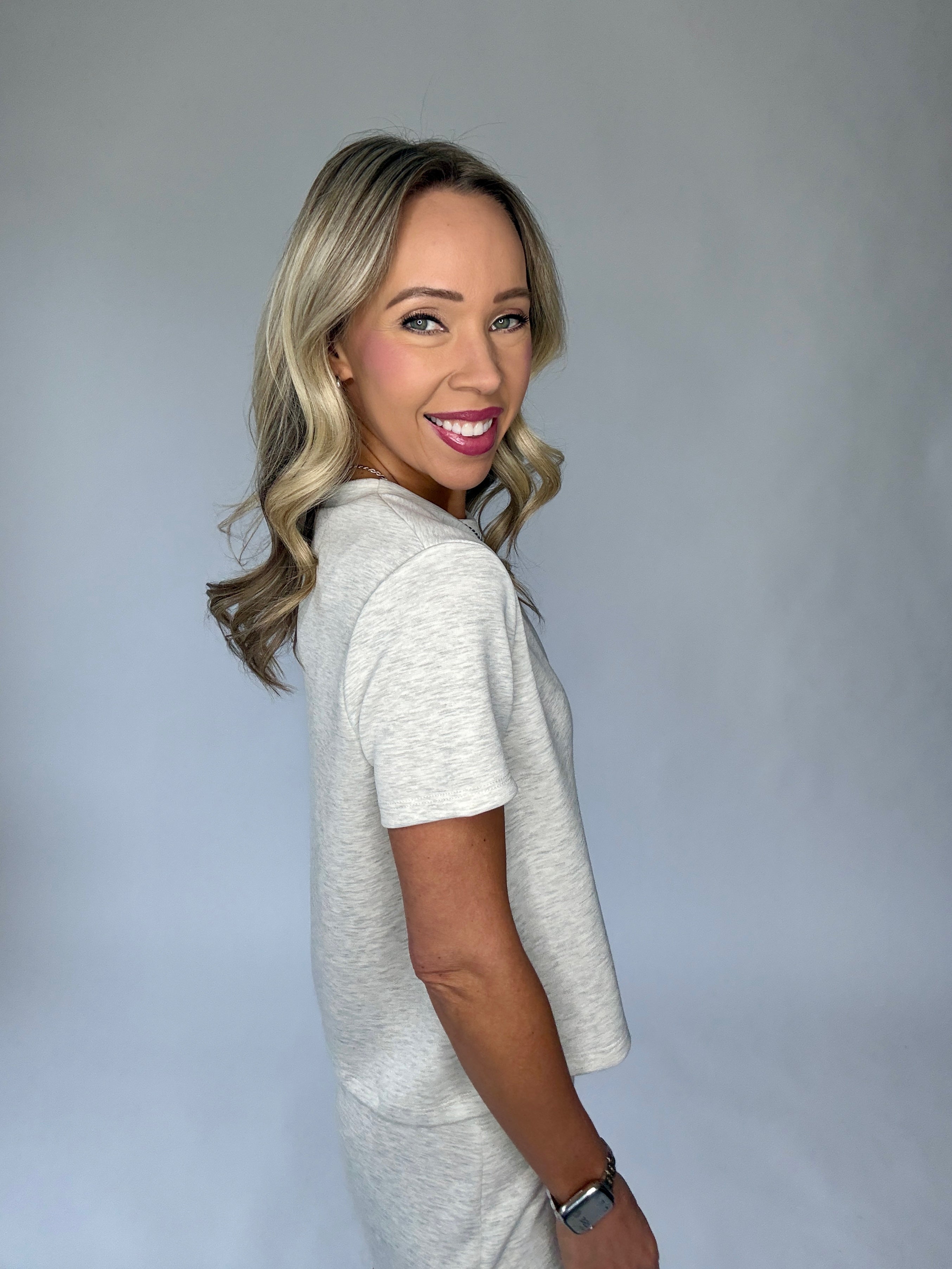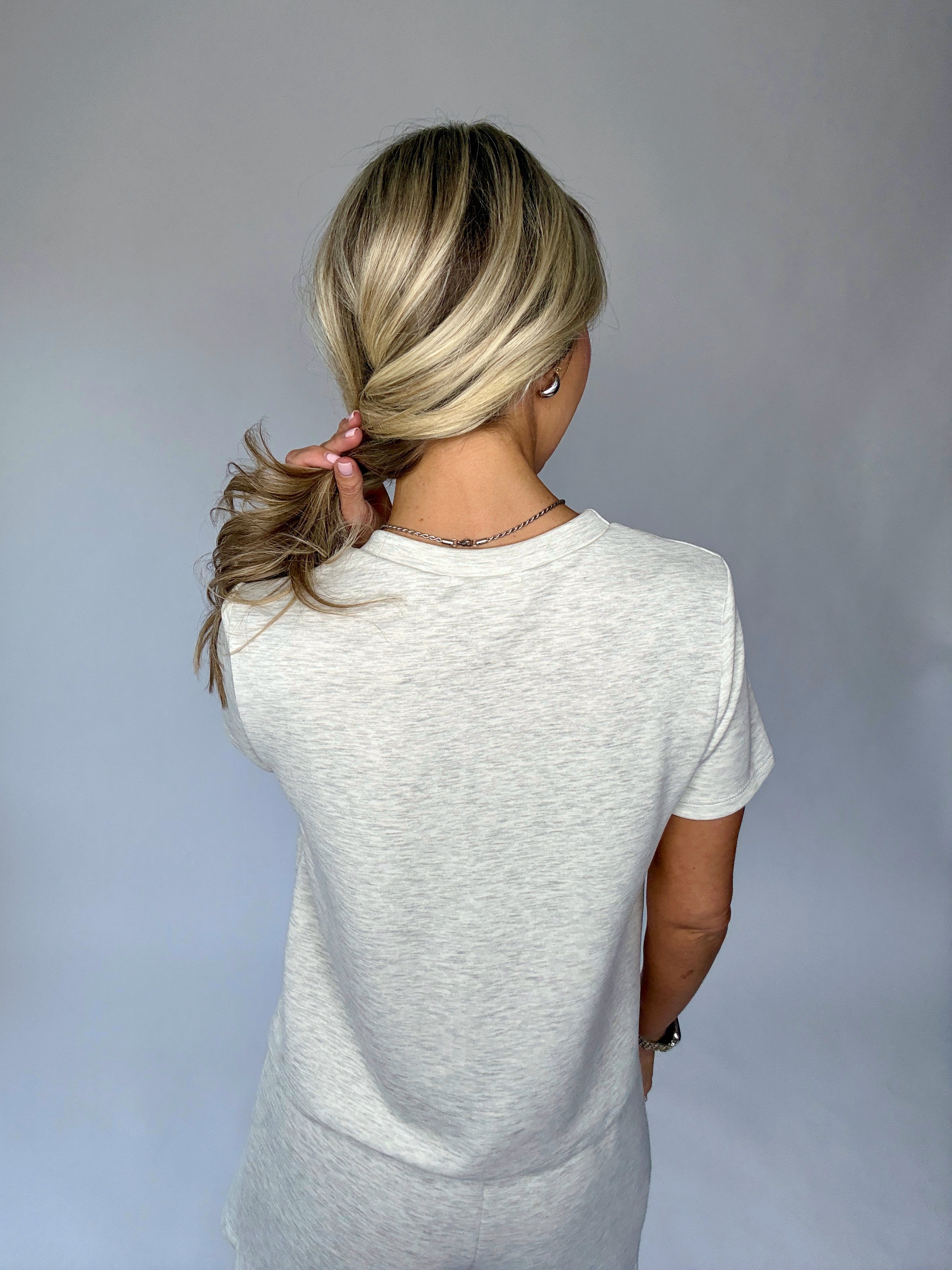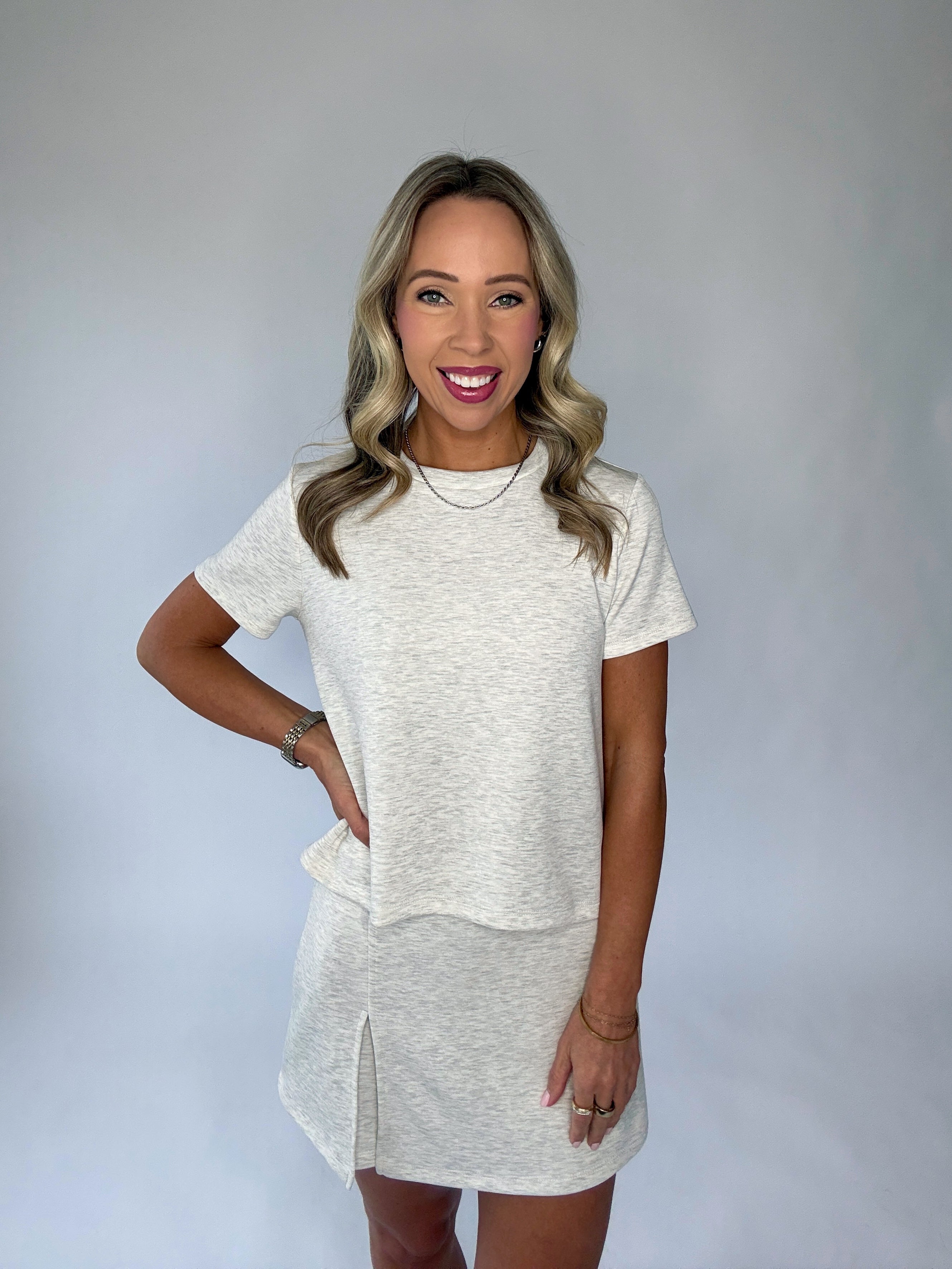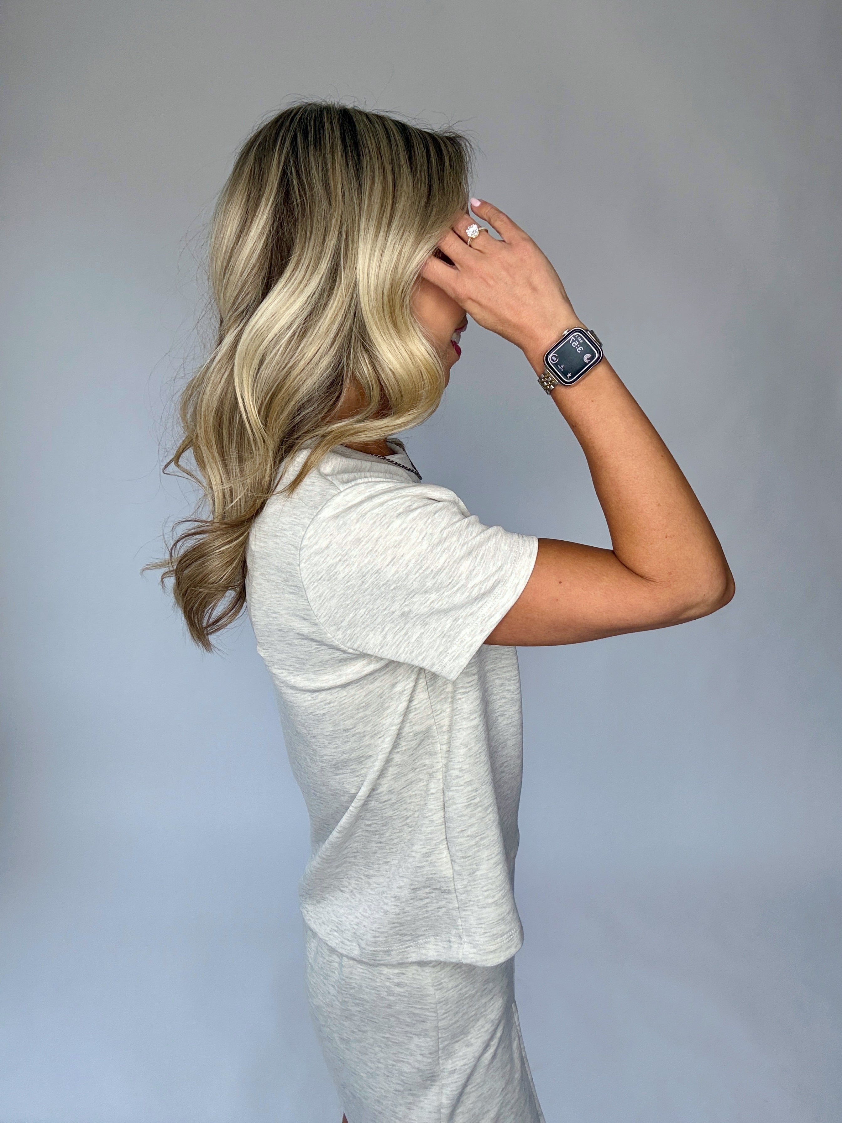 Rendered in a refined ash grey heathered hue, the silhouette is both timeless and versatile. It pairs perfectly with the matching Chasing Sunshine Skort for a coordinated look or stands beautifully on its own with denim or casual shorts for relaxed, everyday styling.