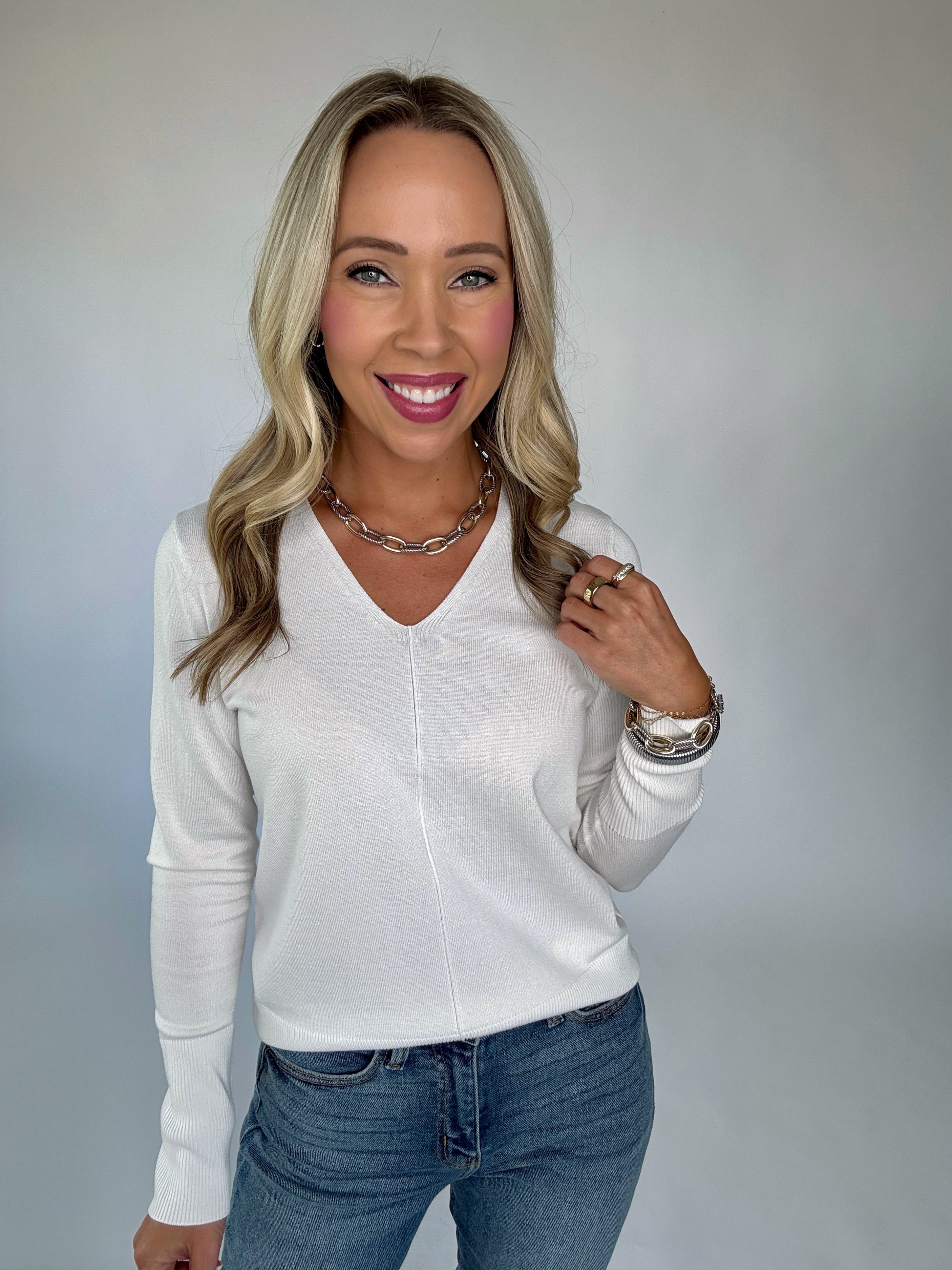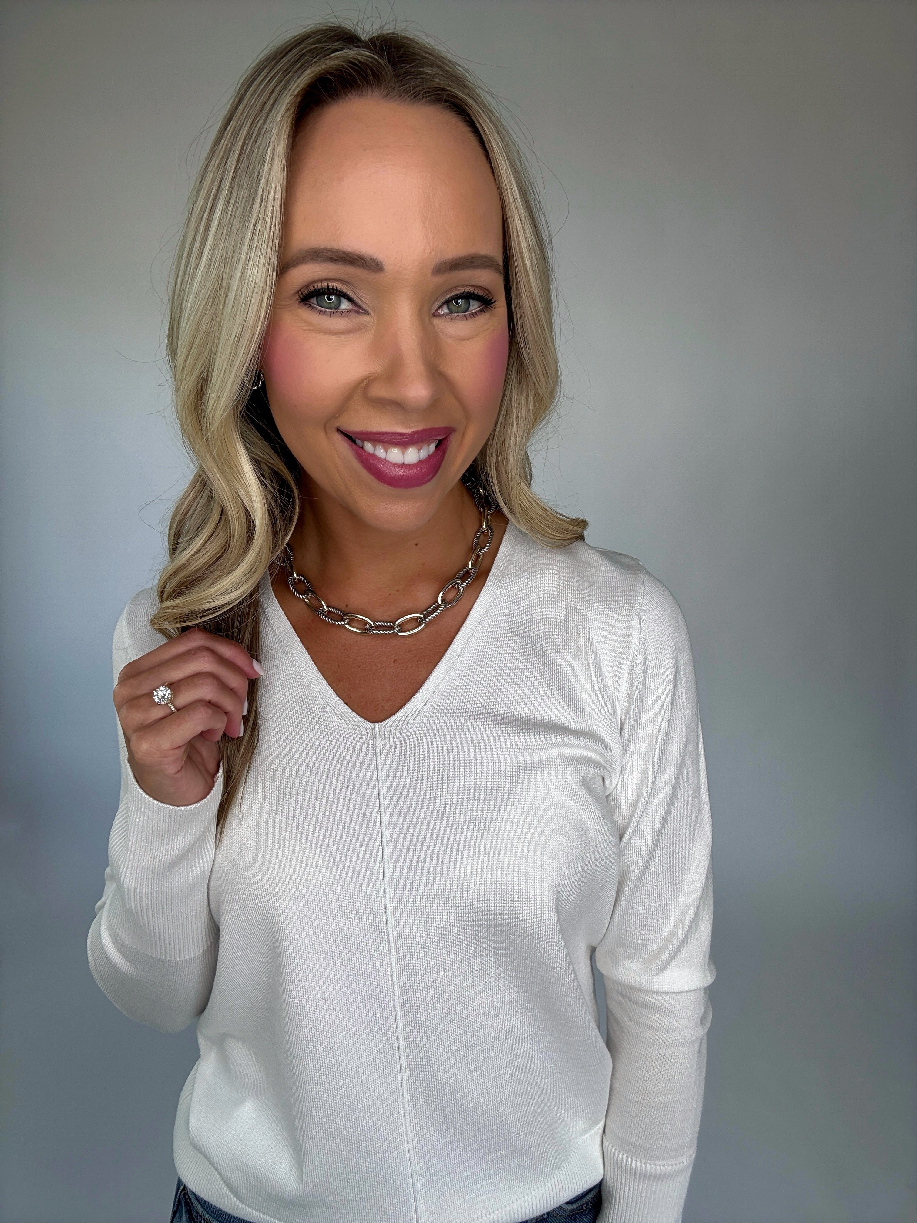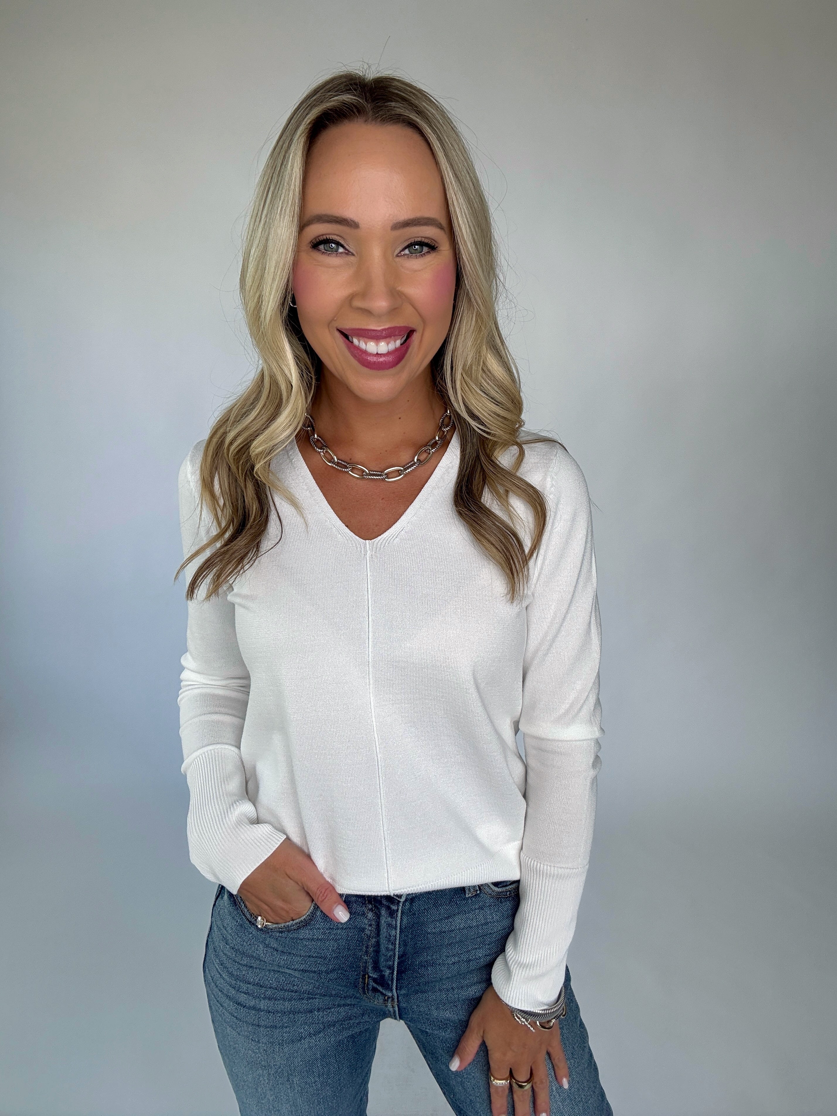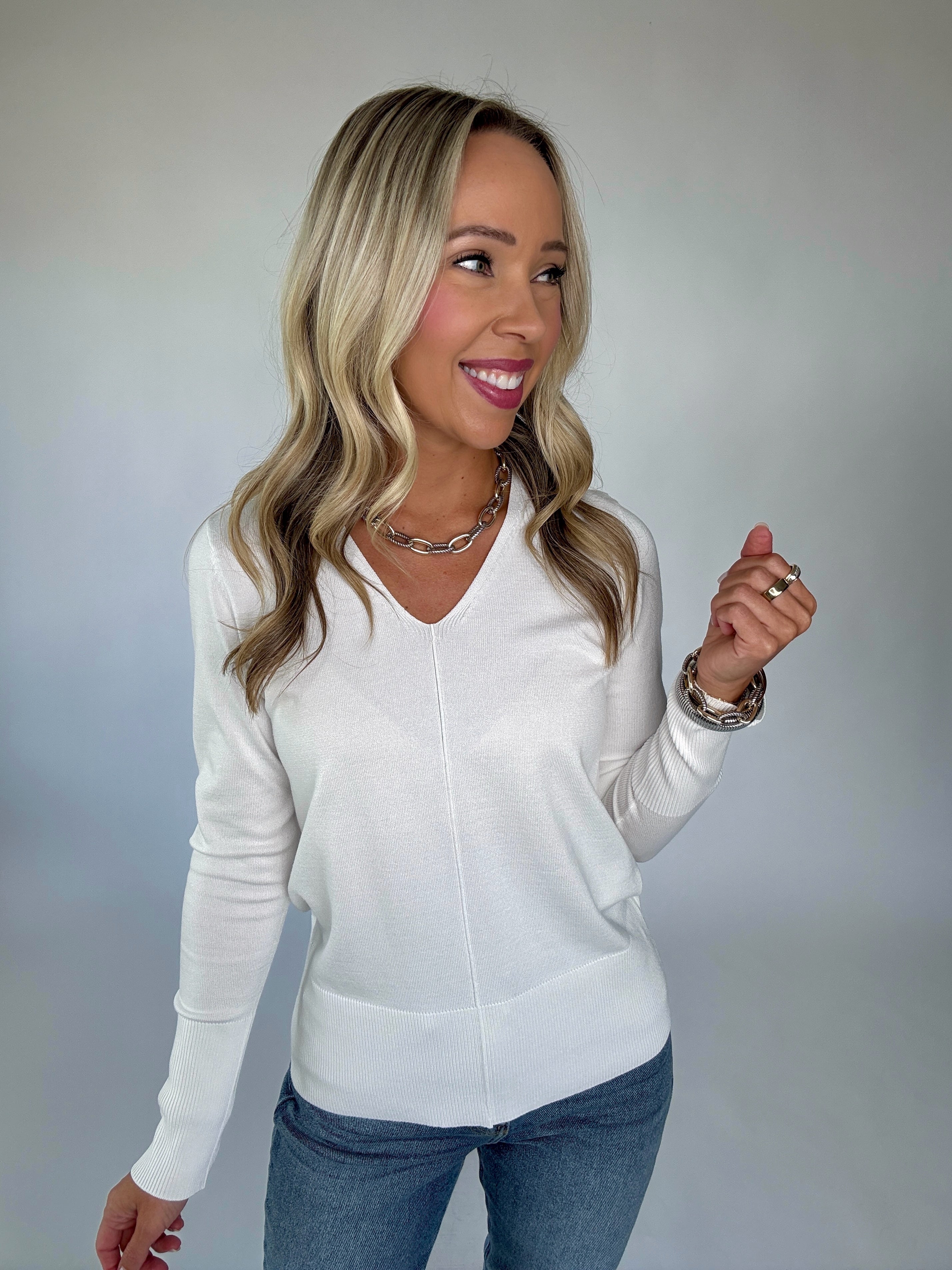 The Autumn Edge V-Neck Pullover is the epitome of refined comfort and effortless style. Designed with a flattering V-neckline and long sleeves, this versatile piece features front and back vertical seams that add subtle structure and sophistication. A wide ribbed hem and sleeve cuffs offer elevated detail, while the ultra-soft, stretchy fabric ensures a flattering fit and all-day ease.