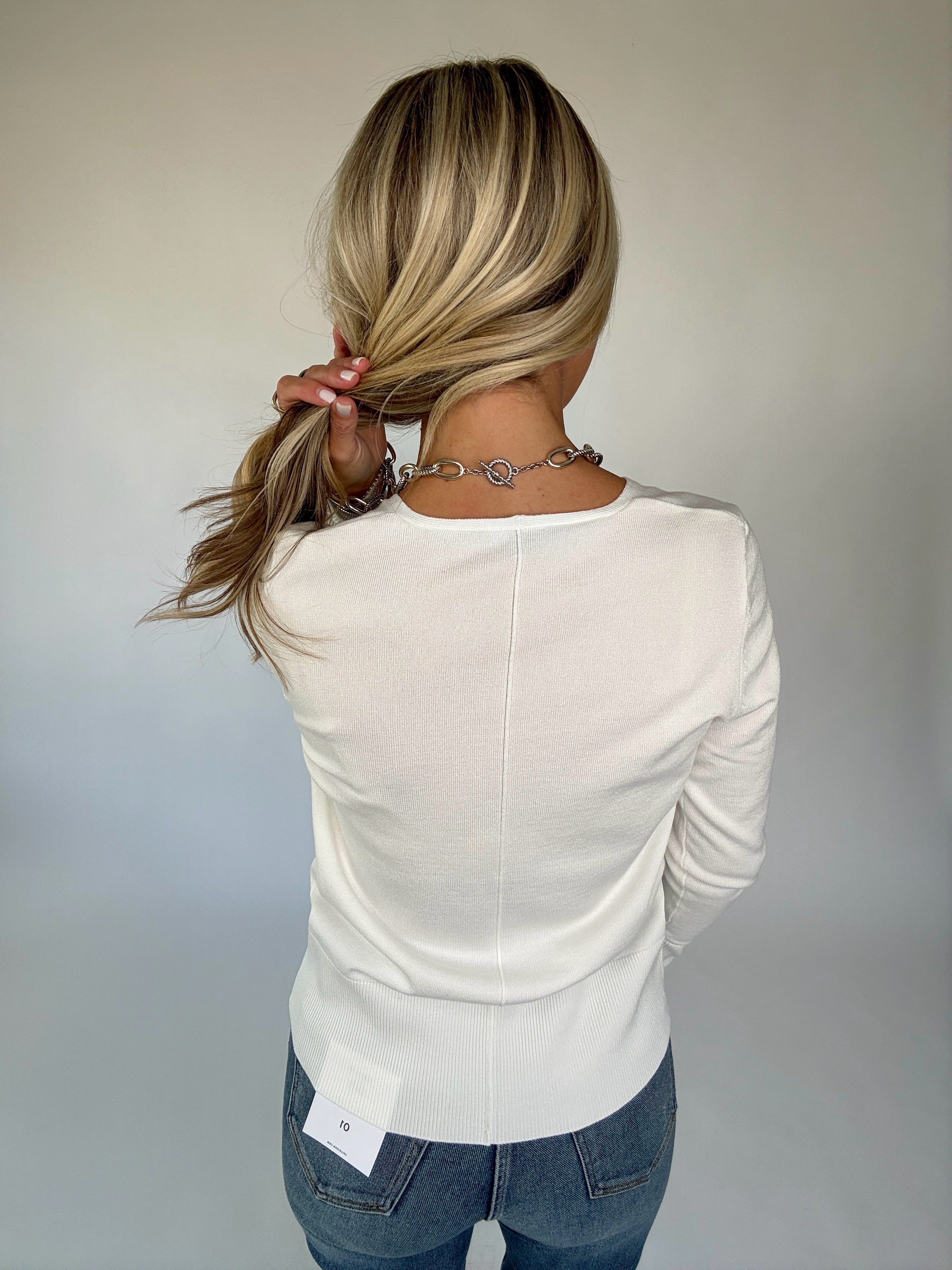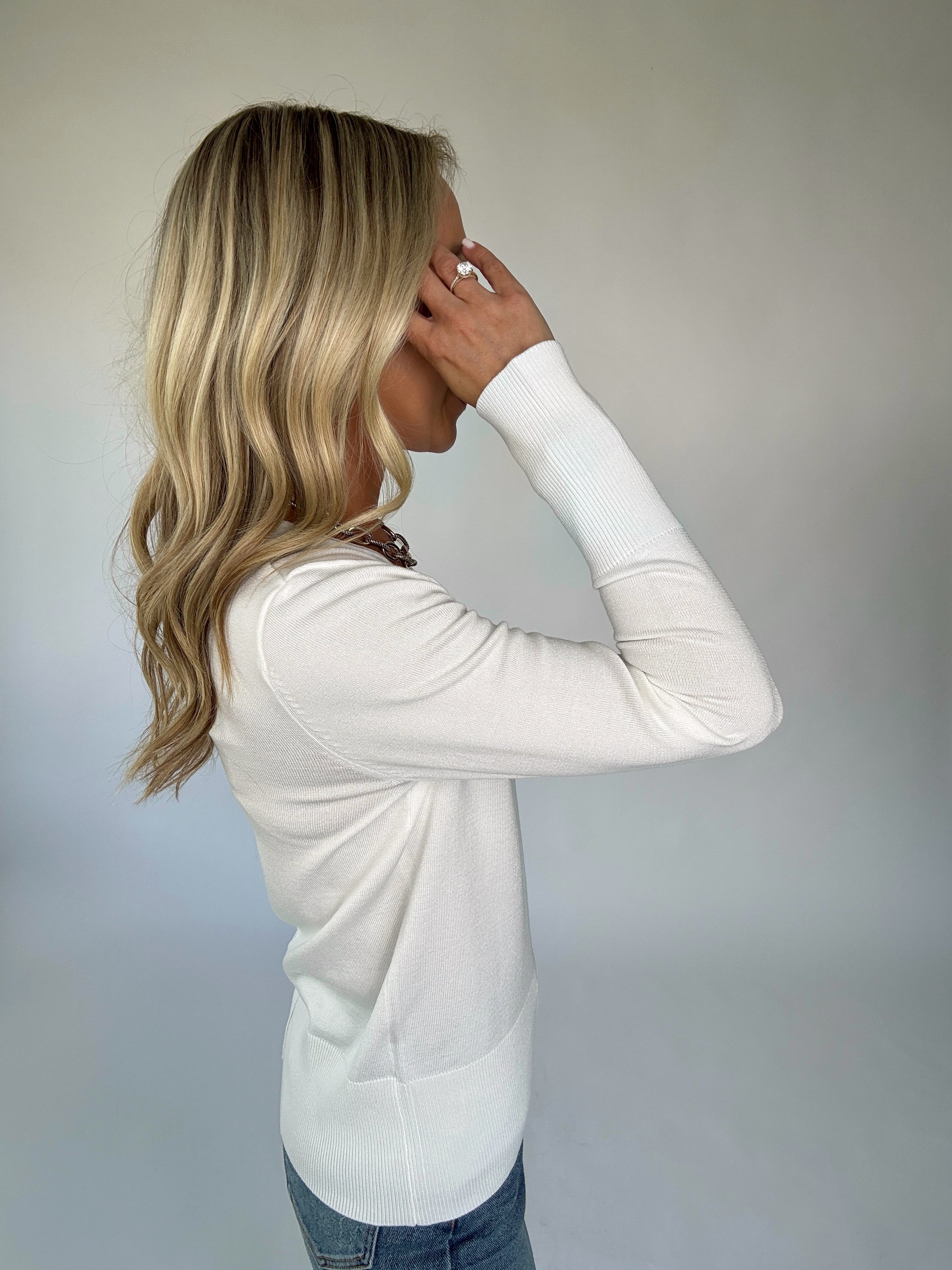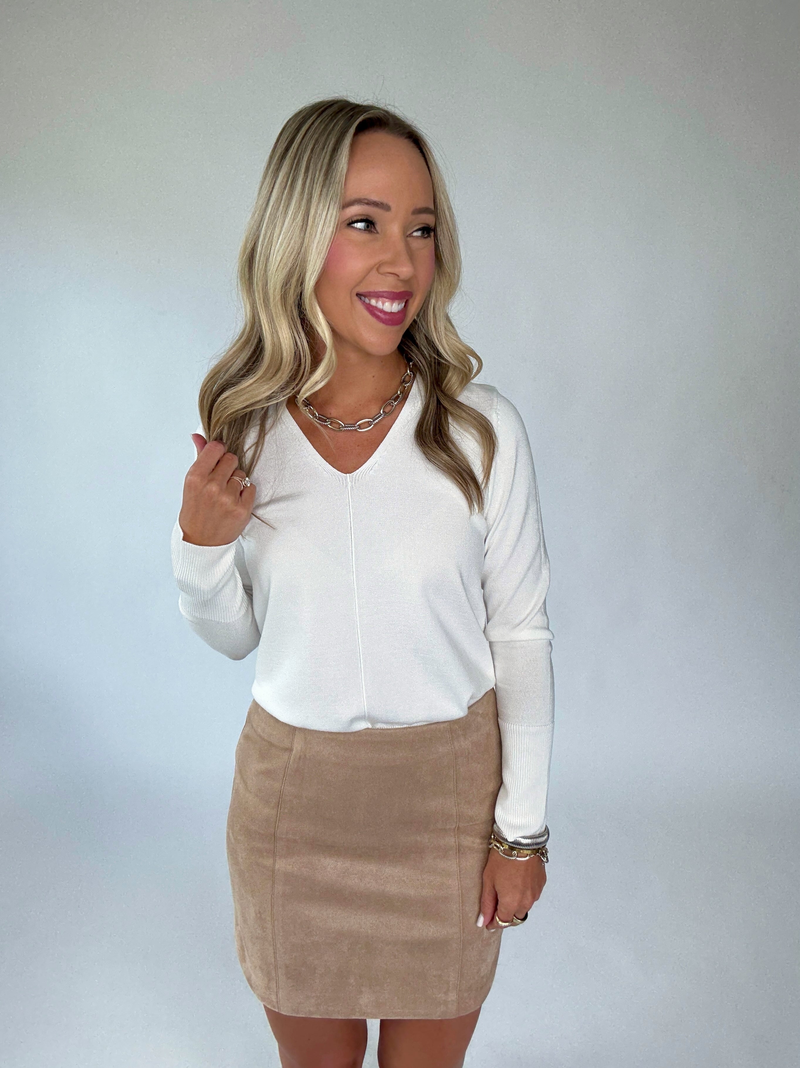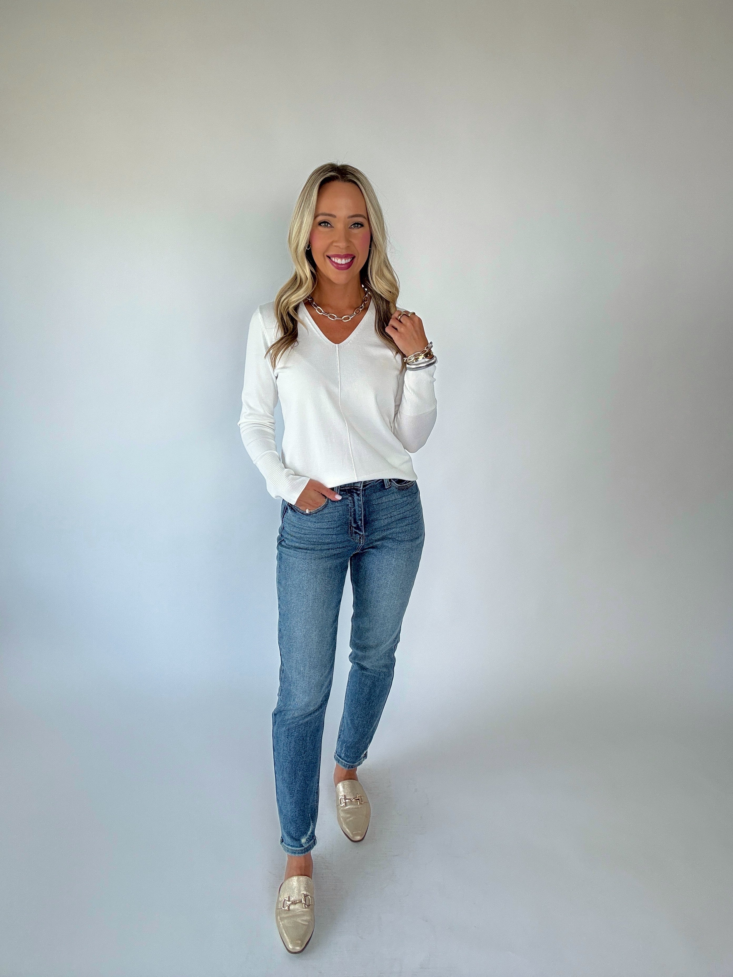 The Autumn Edge V-Neck Pullover is the epitome of refined comfort and effortless style. Designed with a flattering V-neckline and long sleeves, this versatile piece features front and back vertical seams that add subtle structure and sophistication. A wide ribbed hem and sleeve cuffs offer elevated detail, while the ultra-soft, stretchy fabric ensures a flattering fit and all-day ease.