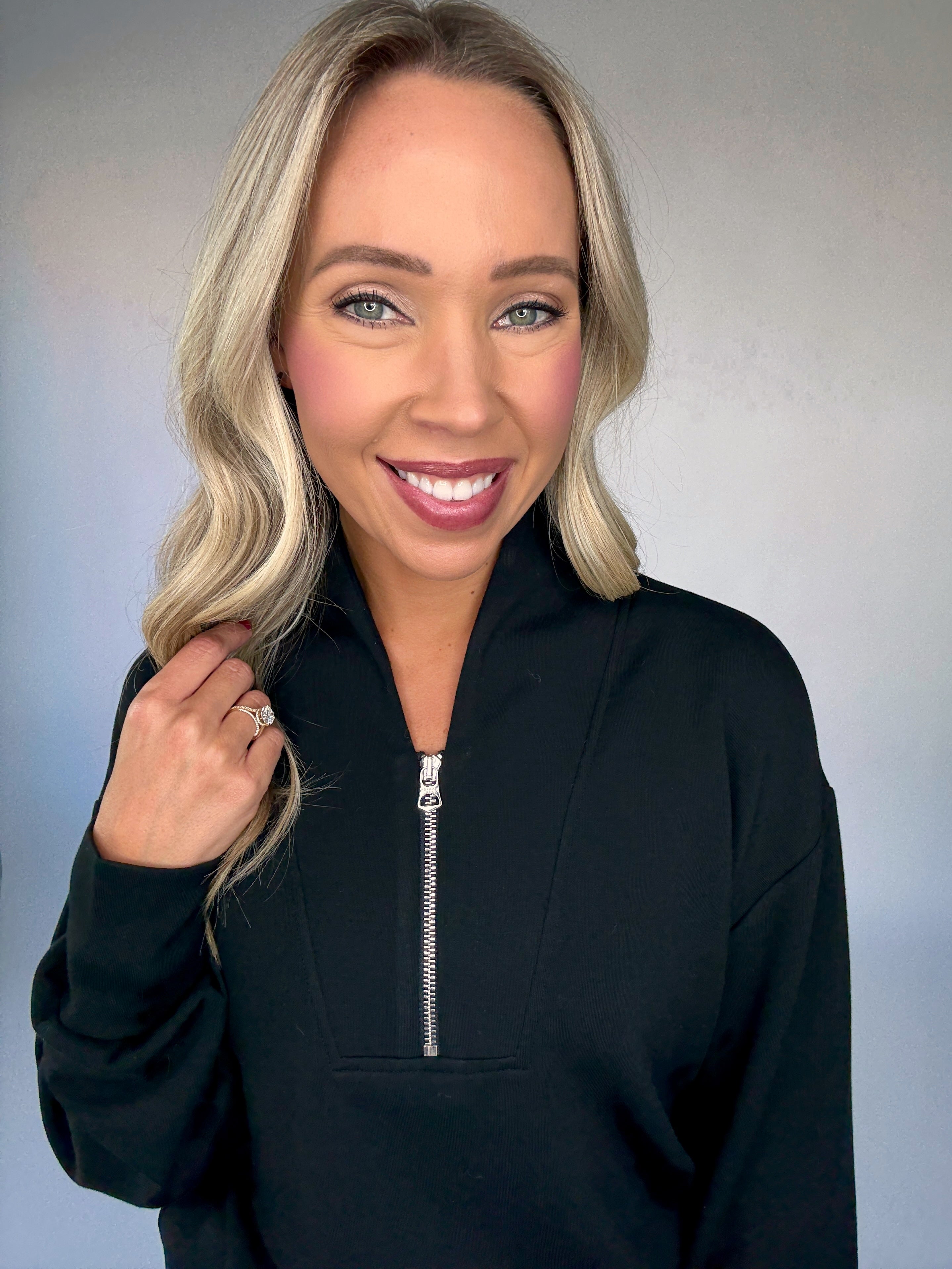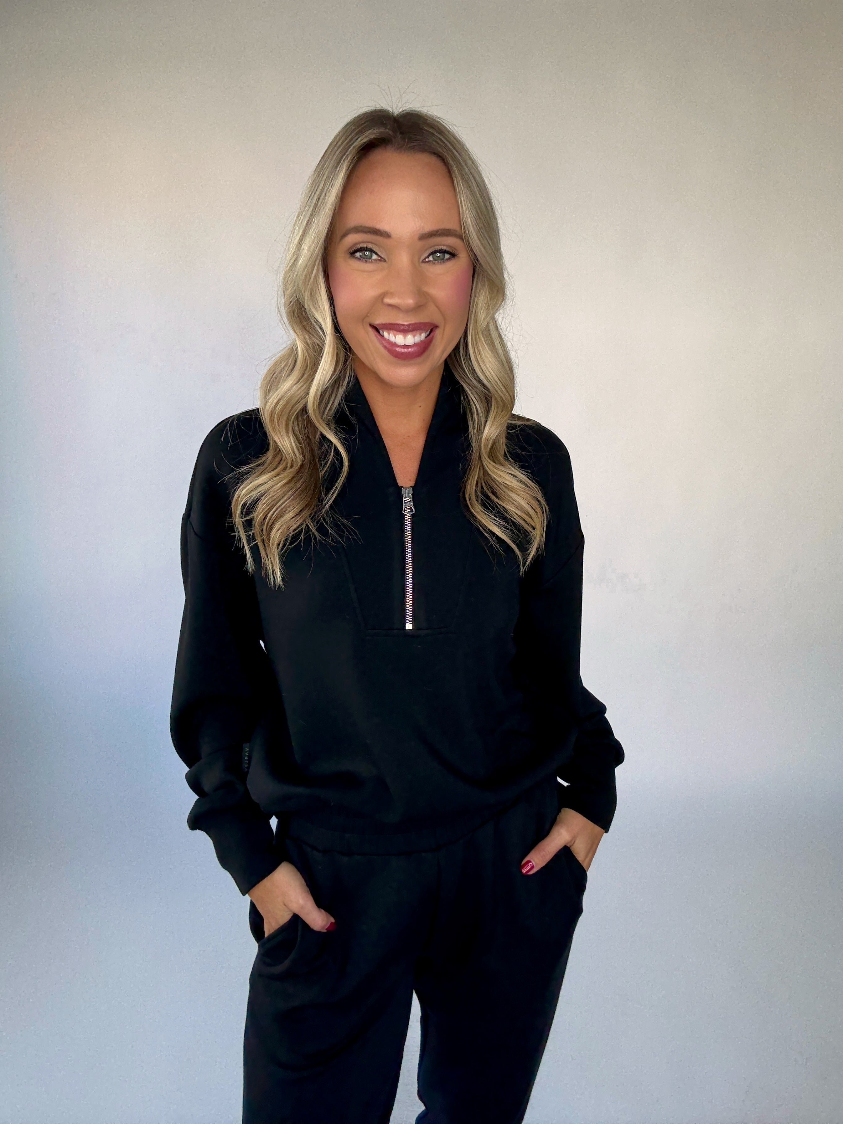 Runs slightly oversized, we recommend sizing down in Varley. Randee is wearing an extra small. The Davidson is cut for a relaxed, subtly cropped fit.