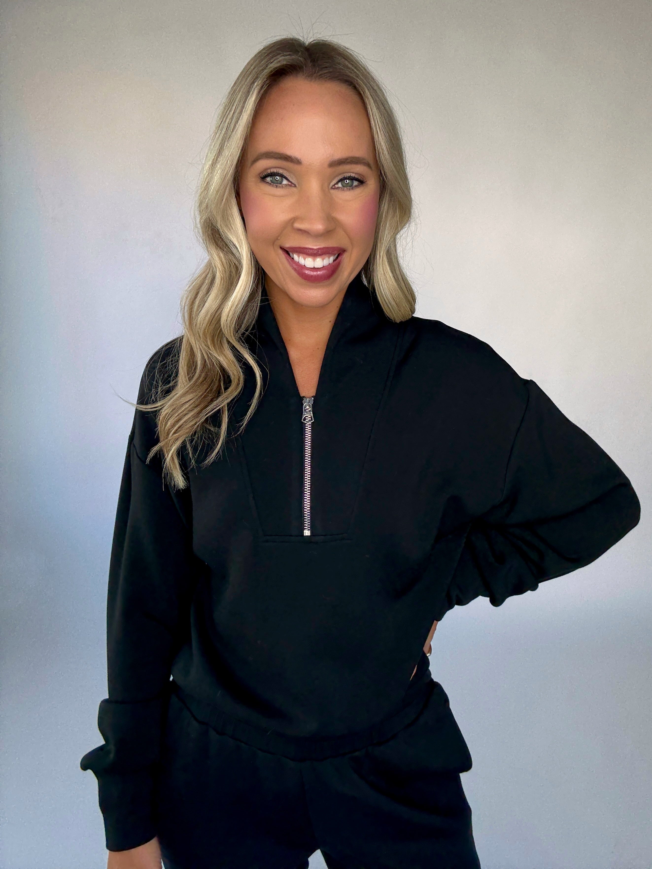 Subtly cropped for versatile styling, the Davidson DoubleSoft® sweat is an essential layering piece.