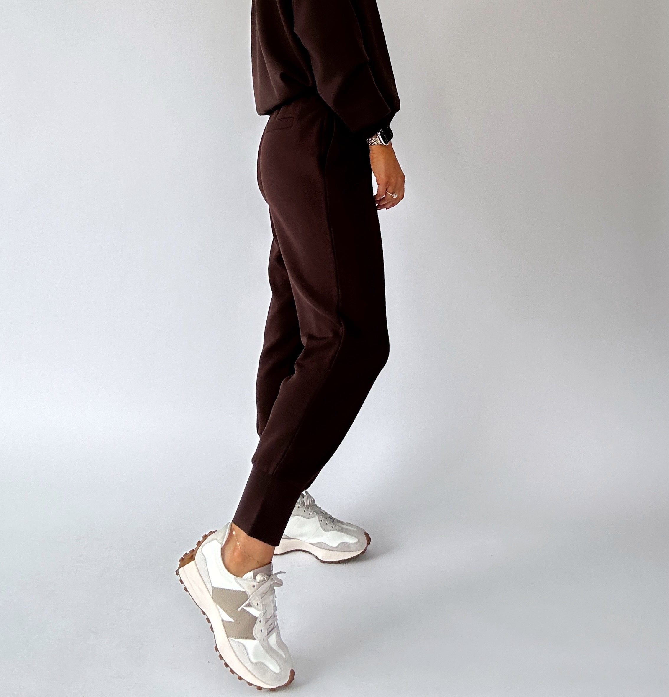 These pants boast a slim, tailored fit that flatters your figure and a cuffed hem that adds a touch of sophistication. The elastic waistband and internal drawcord provide a personalized fit, while the side and back pockets offer practicality. Perfect for pairing with any Varley knit top or DoubleSoft™️ sweaters, they are the ultimate combination of comfort and elegance.