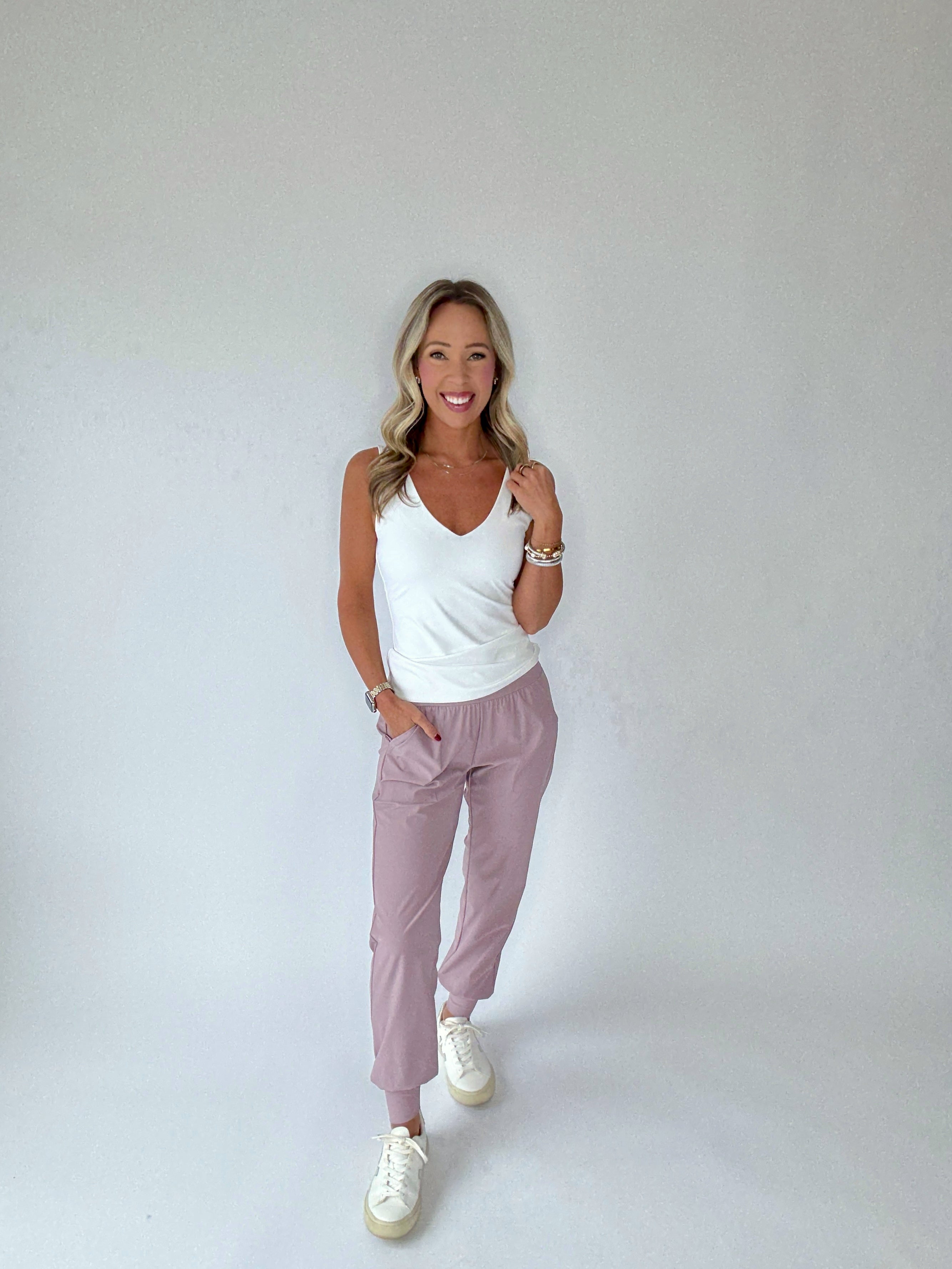 The Work It Joggers bring elevated ease to your everyday wardrobe. Designed in a soft lilac hue, these jogger-style pants blend modern comfort with a polished, effortless aesthetic. An elastic waistband ensures a flattering and flexible fit, while side pockets add practical functionality for life on the go.